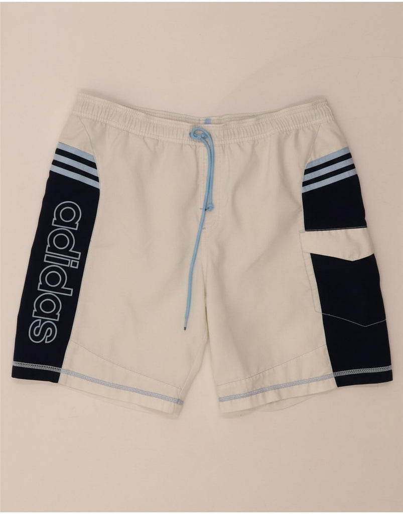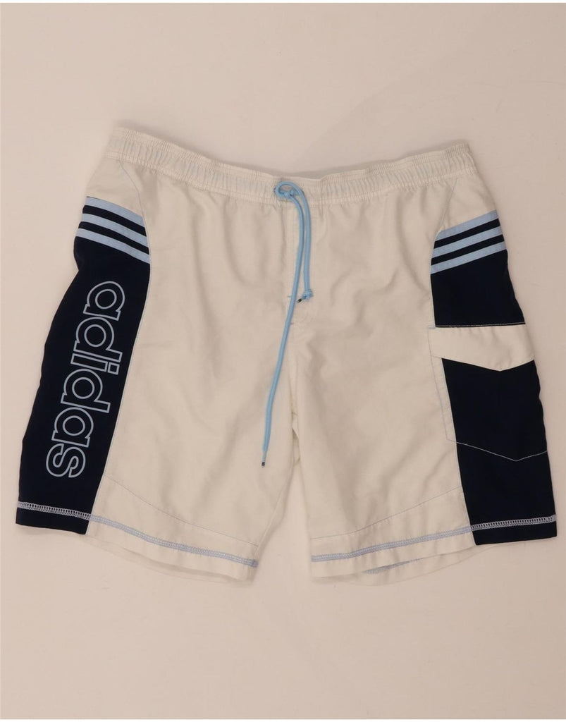 ADIDAS Mens Graphic Swimming Shorts Large White Colourblock Polyester
