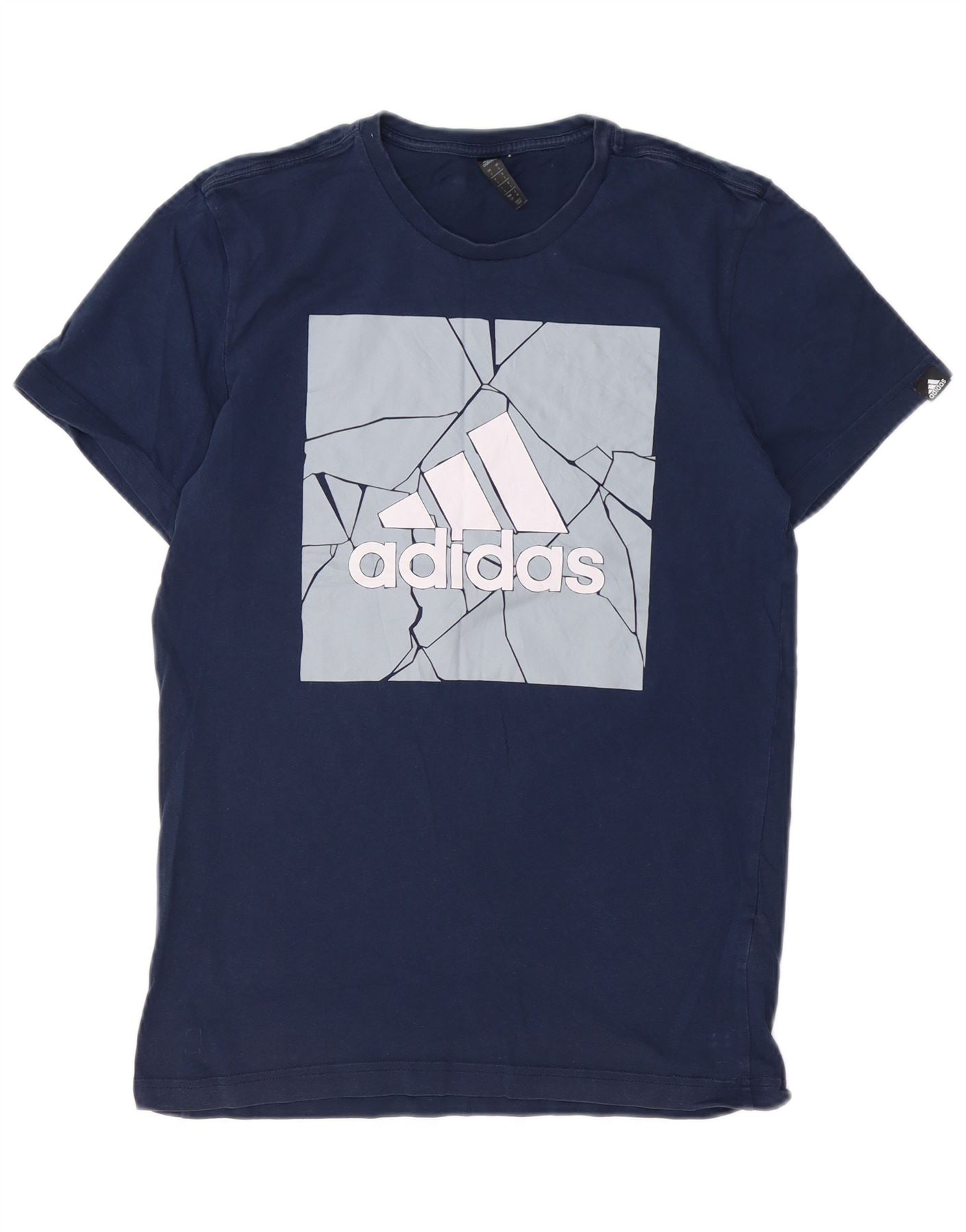 ADIDAS Mens Graphic T-Shirt Top Small Navy Blue Cotton