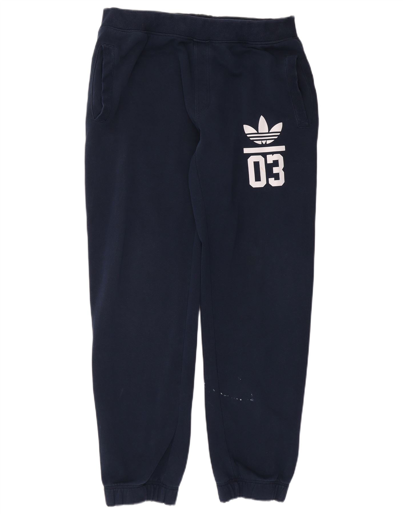 ADIDAS Mens Graphic Tracksuit Trousers Joggers Large Navy Blue Cotton