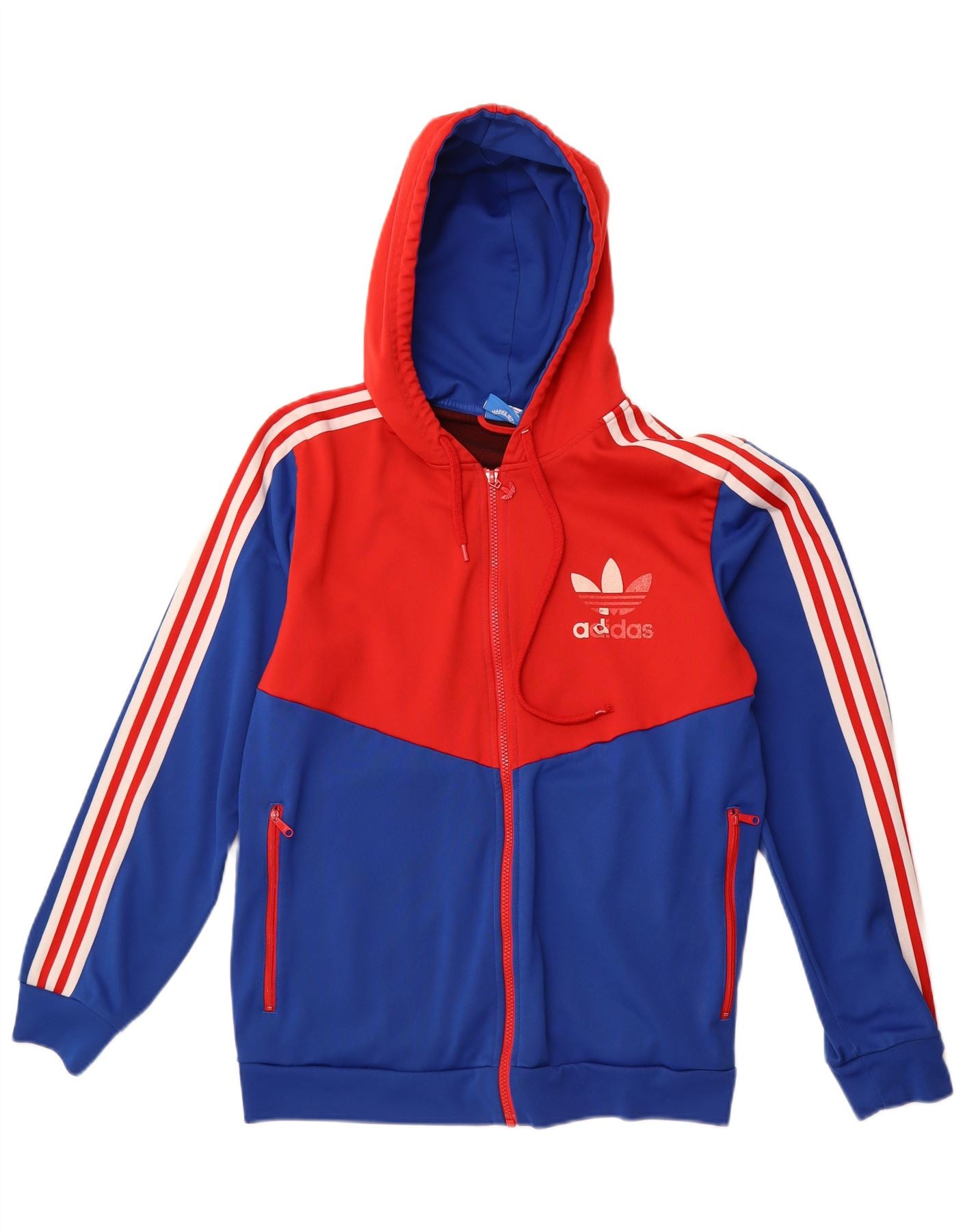 ADIDAS Mens Graphic Zip Hoodie Sweater Large Blue Colourblock Polyester
