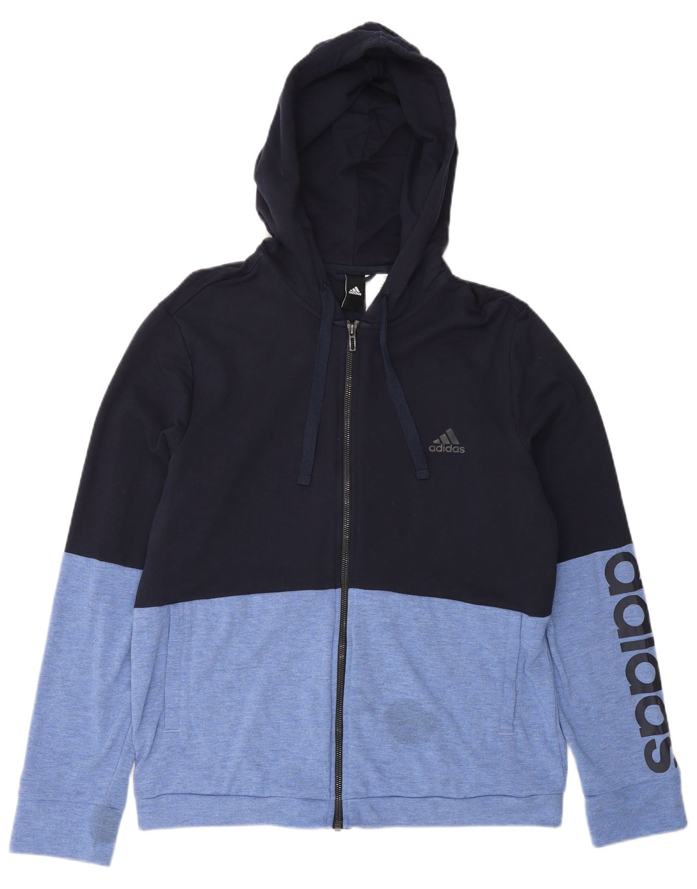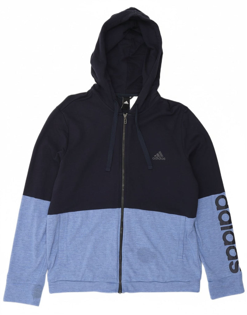 ADIDAS Mens Graphic Zip Hoodie Sweater Small Navy Blue Colourblock Cotton