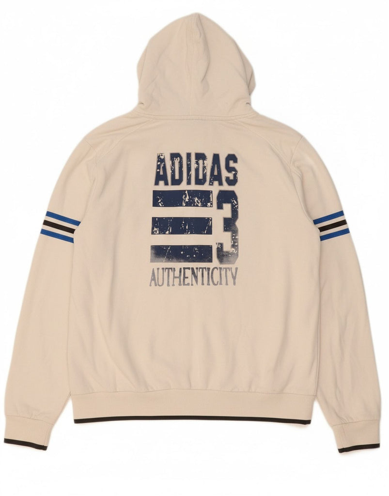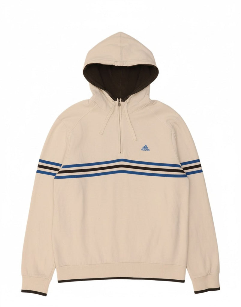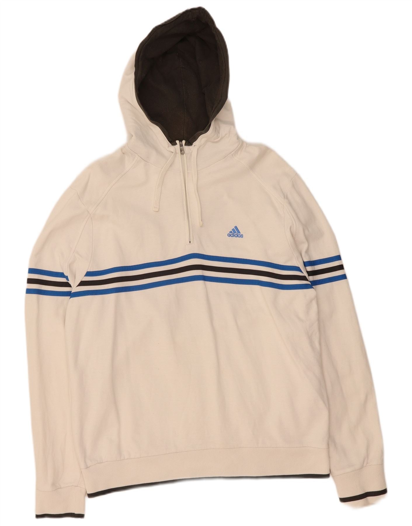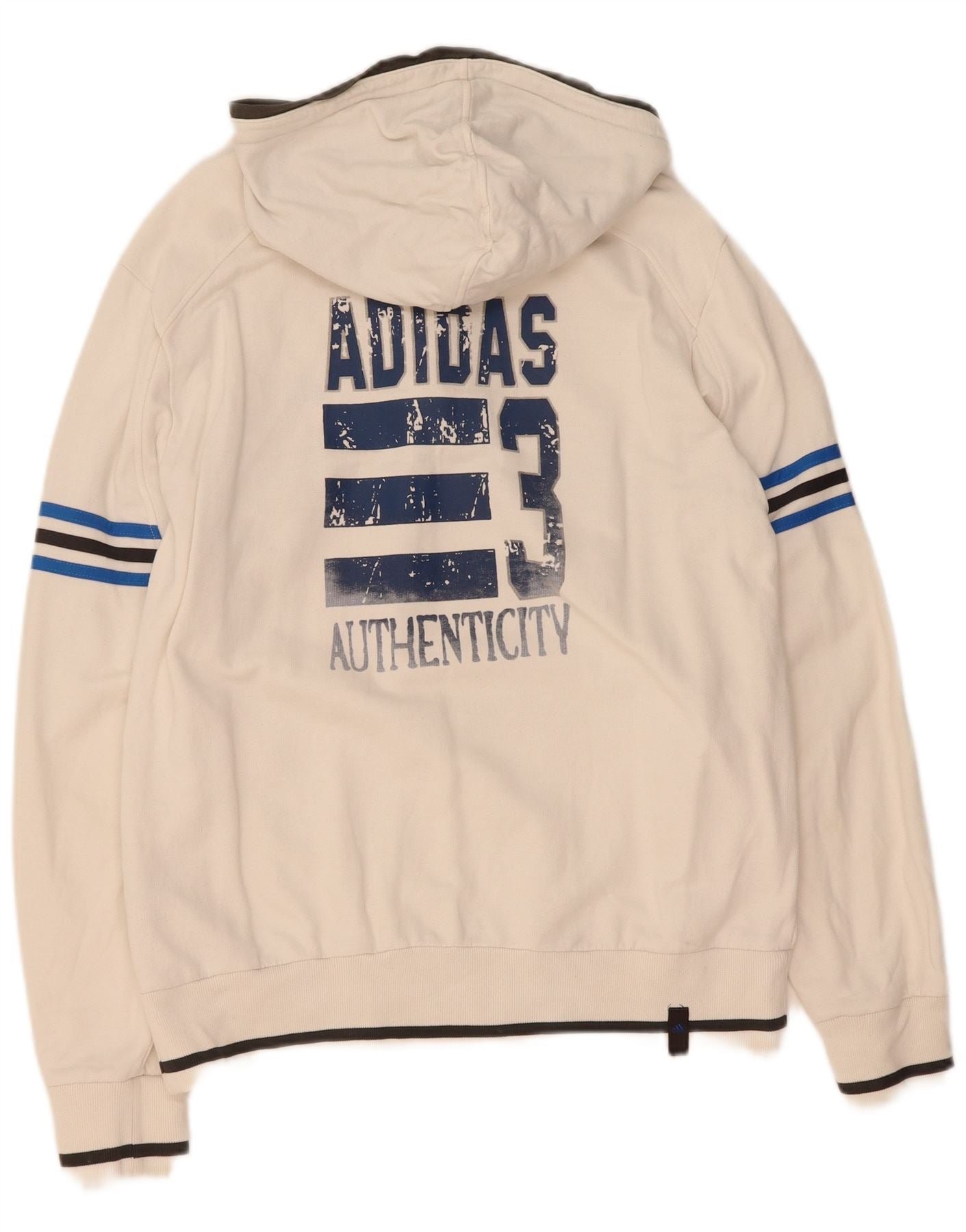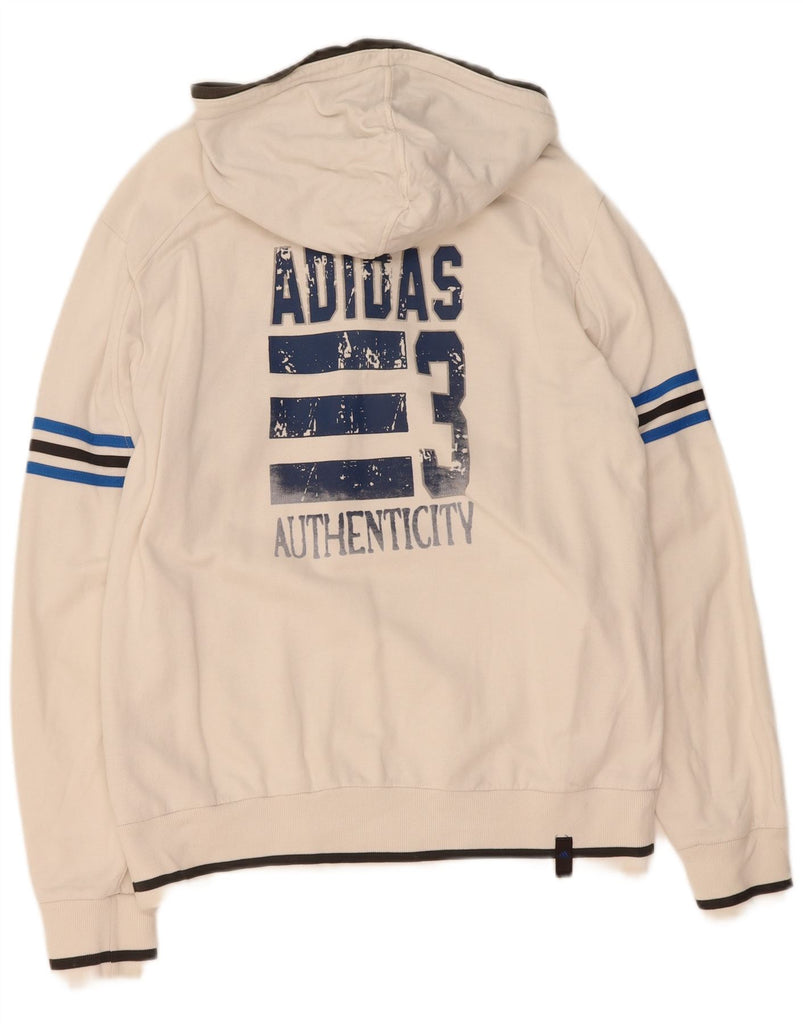 ADIDAS Mens Graphic Zip Neck Hoodie Jumper UK 42/44 Large White Striped