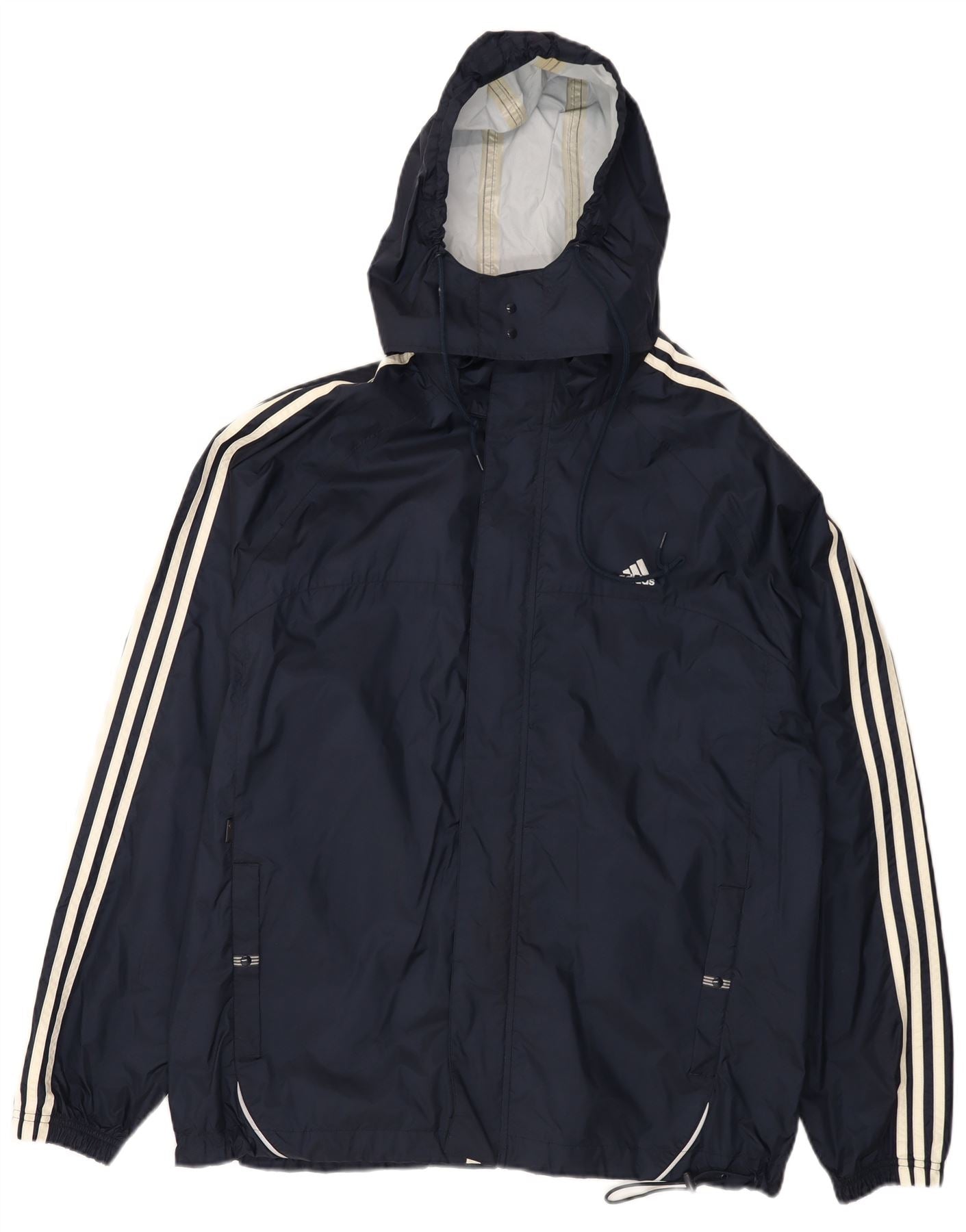 ADIDAS Mens Hooded Rain Jacket UK 40 Large Navy Blue Nylon