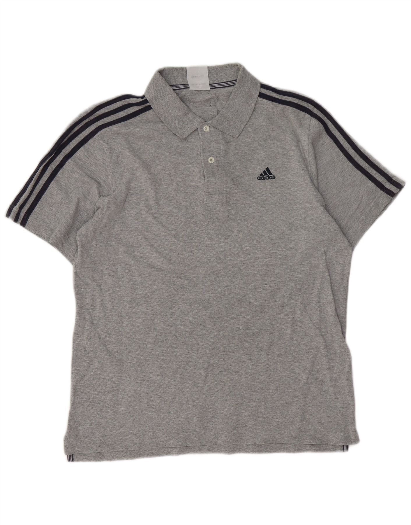 ADIDAS Mens Polo Shirt Medium Grey Cotton
