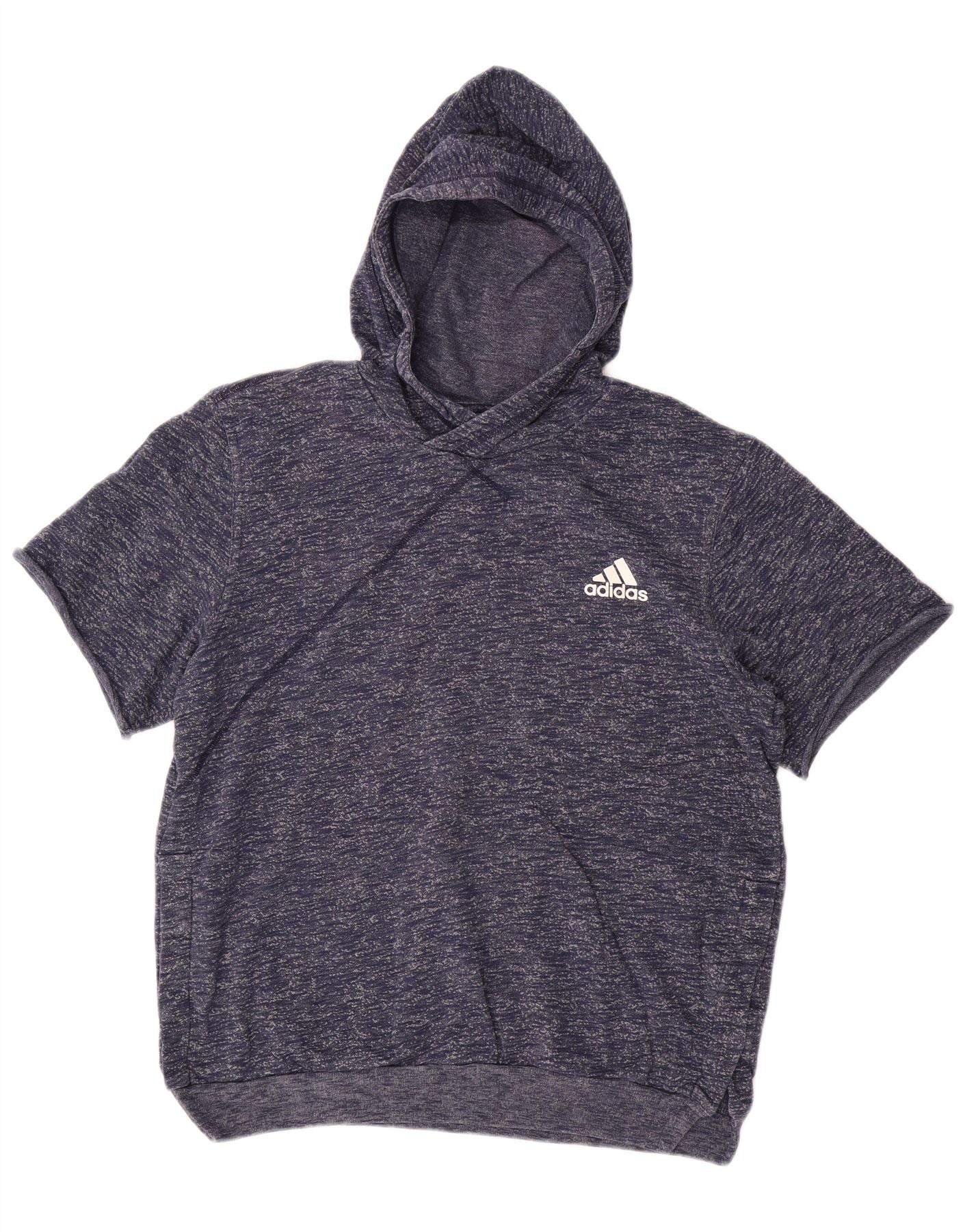 ADIDAS Mens Short Sleeve Hoodie Jumper Large Navy Blue Flecked Cotton