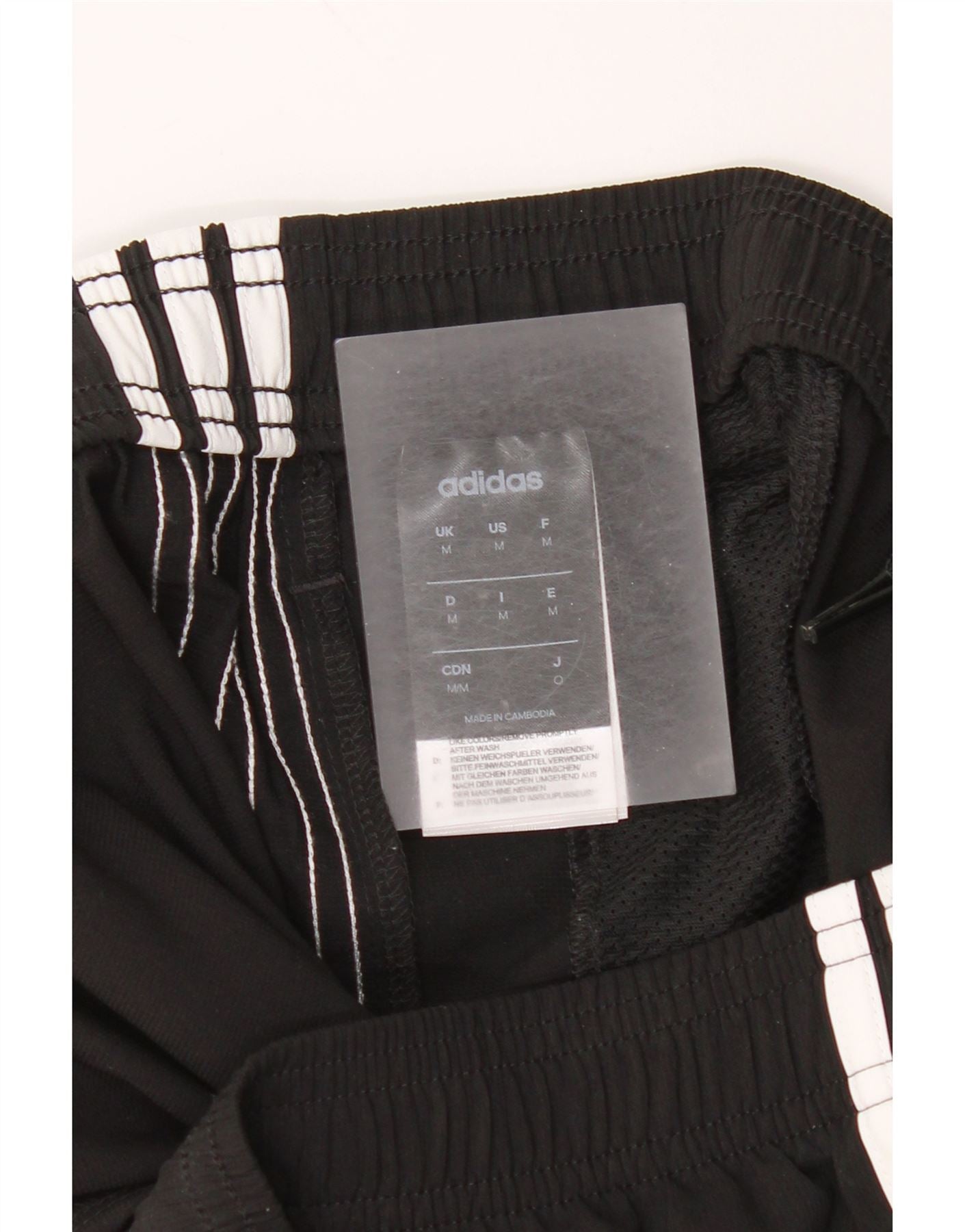 - AI Description: This Adidas mens shorts are crafted from a comfortable black blended fabric. They feature a pull on design with an elastic waist for ease. The regular fit ensures comfort and freedom of movement. Classic white stripes run down each side, adding a sporty touch. A subtle Adidas logo is printed on the leg. Ideal for football or general sports activities, offering both style and practicality.