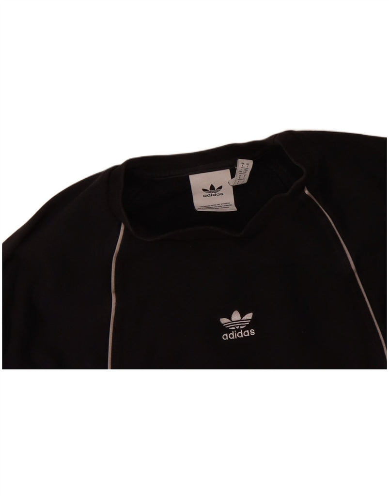 - AI Description: This Adidas mens sweatshirt jumper is crafted from a comfortable black knit fabric. It features a classic round neck and long sleeves. The pullover style ensures ease of wear. A regular fit offers comfortable movement. A prominent graphic logo provides a distinctive accent. This design combines stretch and comfort for everyday wear, perfect for a sports style.