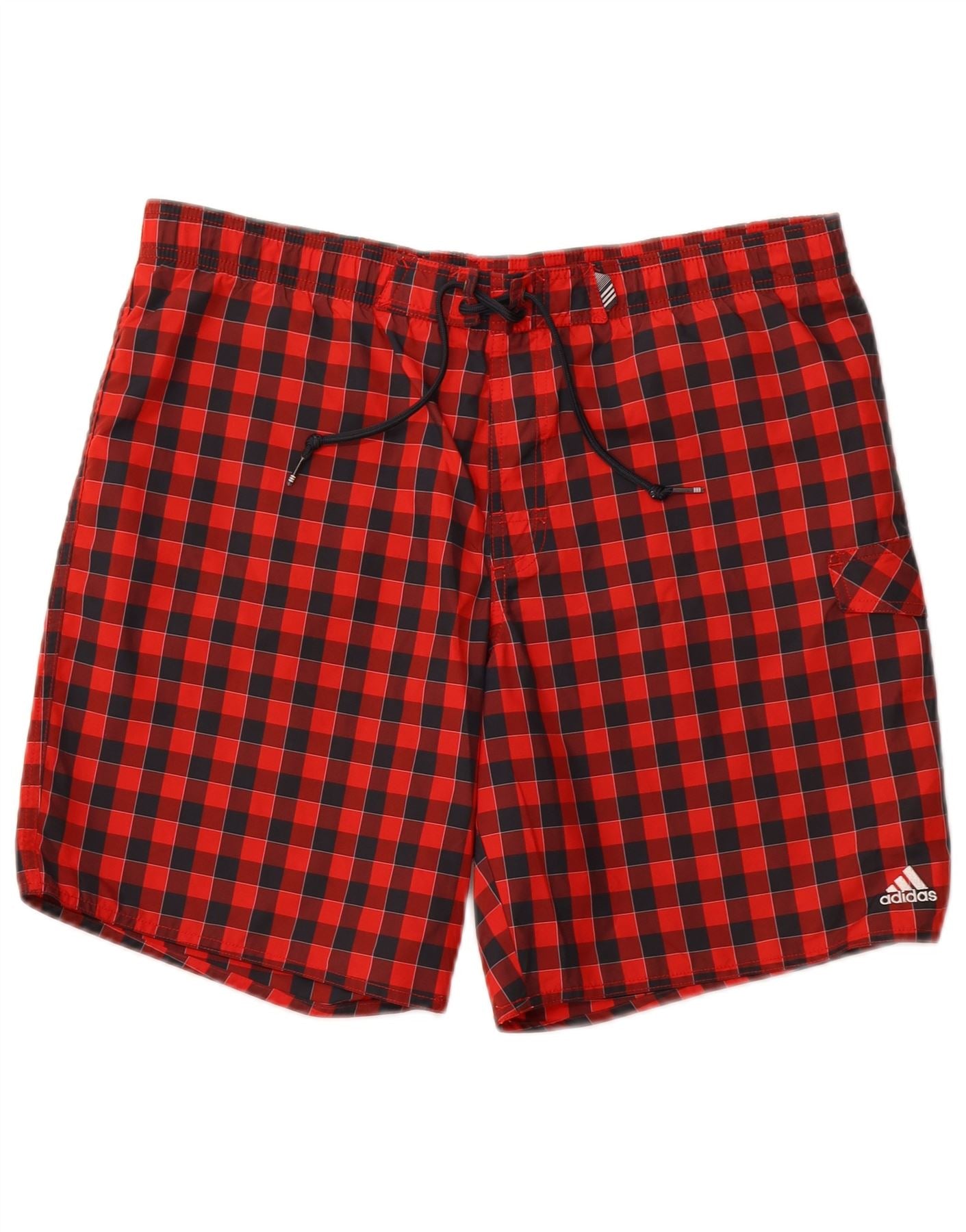 ADIDAS Mens Swimming Shorts Medium Red Gingham Polyester