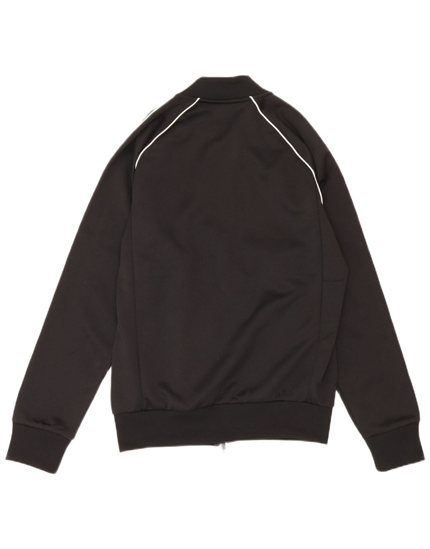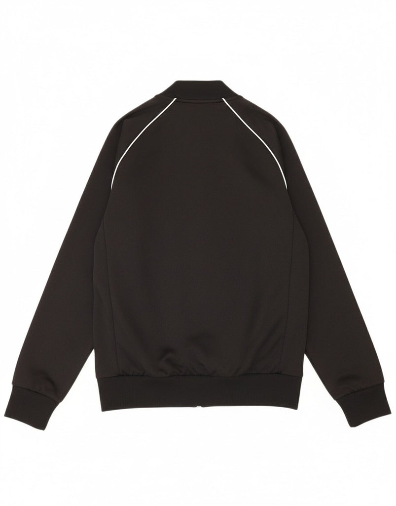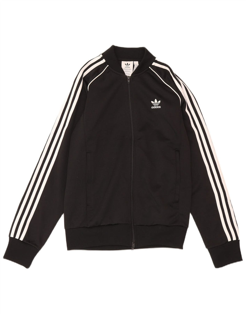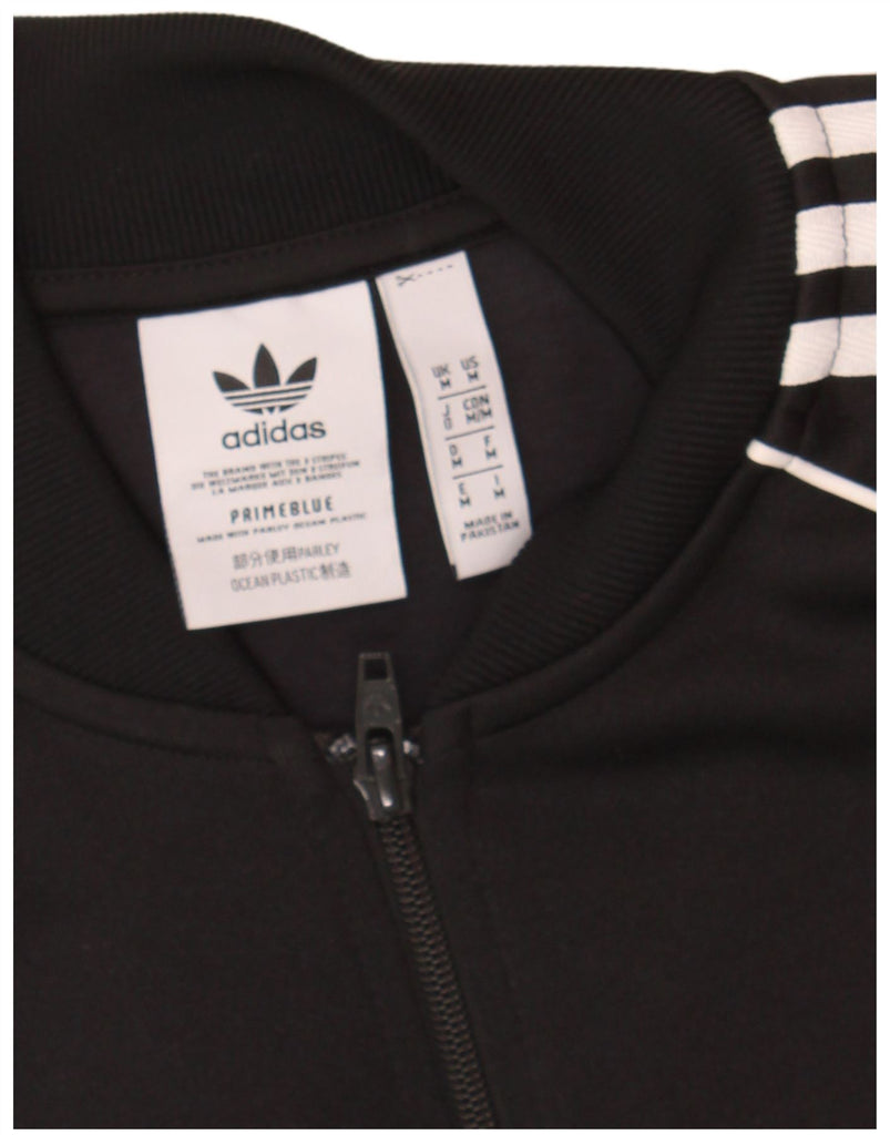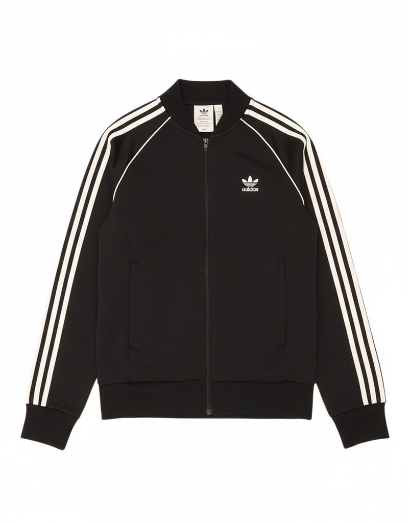 - AI Description: This Adidas mens tracksuit top jacket is crafted from a lightweight knit fabric in classic black. It features a collared neckline and a full zip closure for versatile wear. The long sleeves and regular fit offer comfortable movement. Practical pockets and an elasticated waist enhance functionality. A distinctive graphic design and brand logo add a sporty, modern appeal.