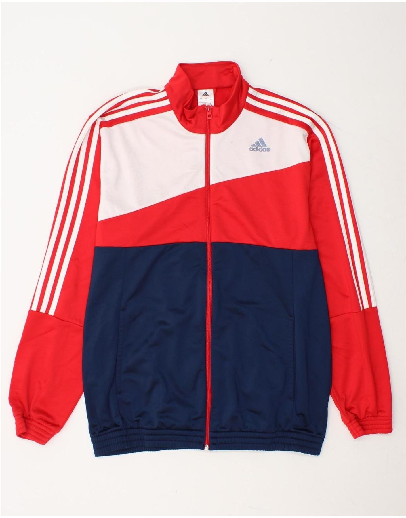 ADIDAS Mens Tracksuit Top Jacket UK 44/46 Large Red Colourblock Polyester