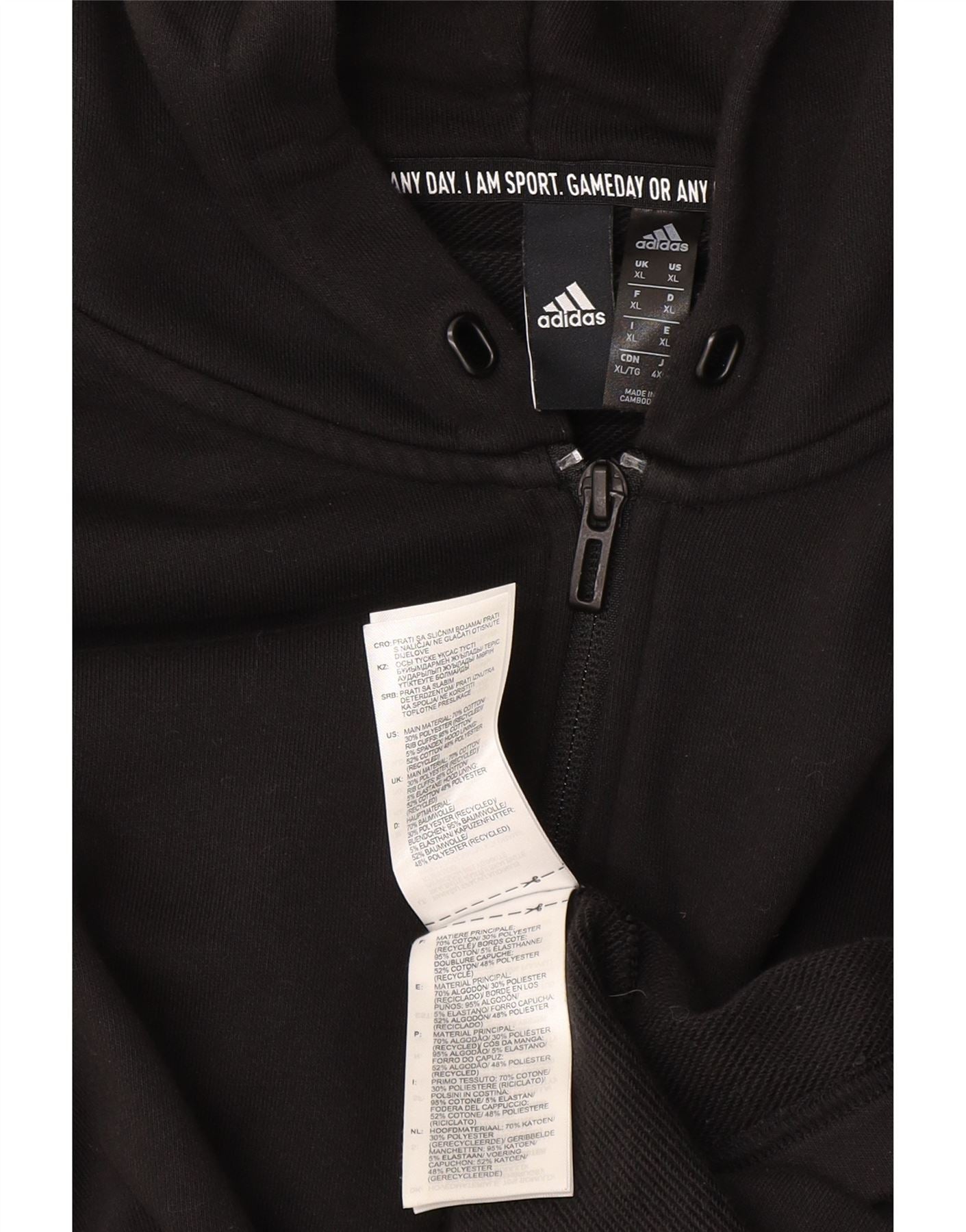 Adidas Mens Zip Hoodie Sweater XL Black Cotton