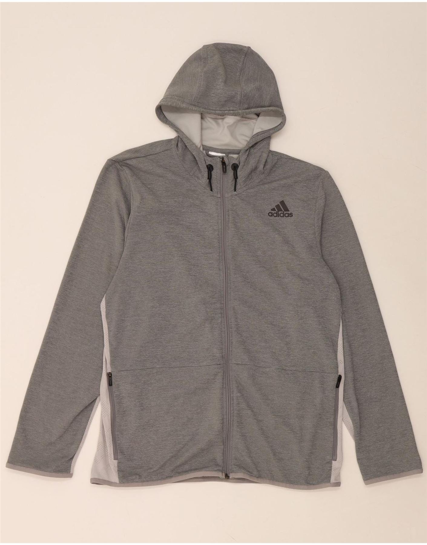 ADIDAS Mens Zip Hoodie Sweater XL Grey Polyester