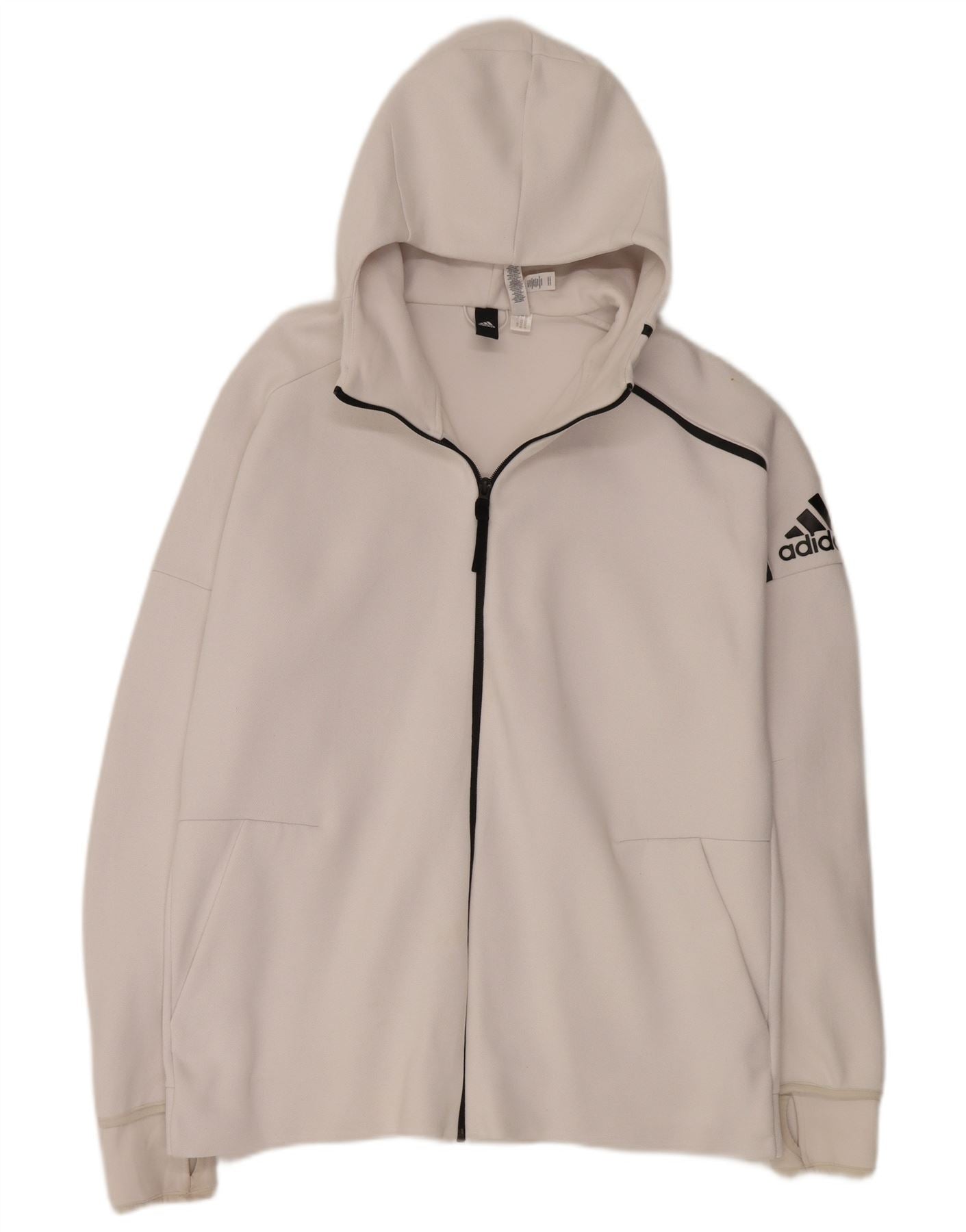 Adidas Mens Zip Hoodie Sweater XL White Cotton