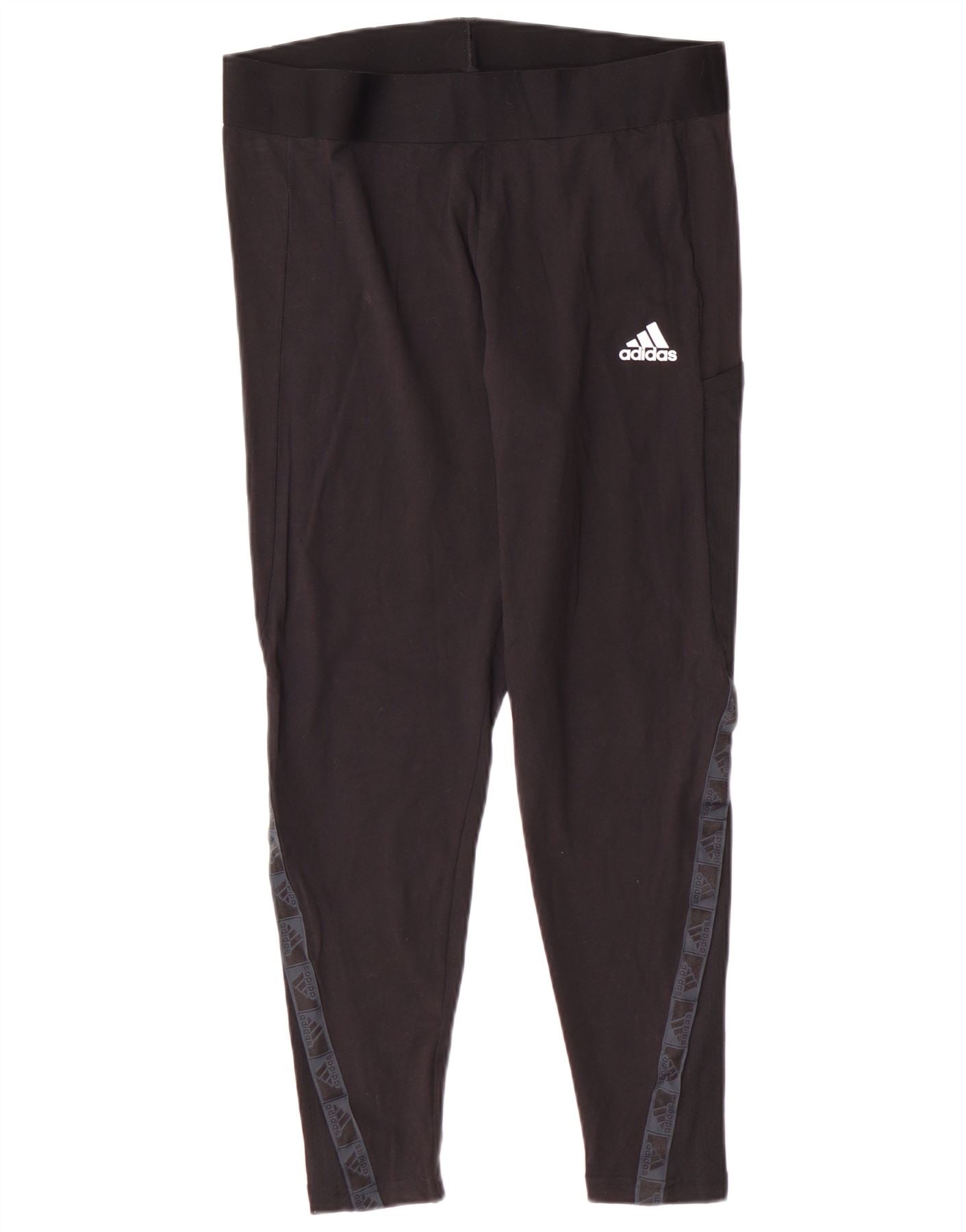 ADIDAS Womens Aeroready Crop Graphic Leggings UK 16/18 Large Black Cotton