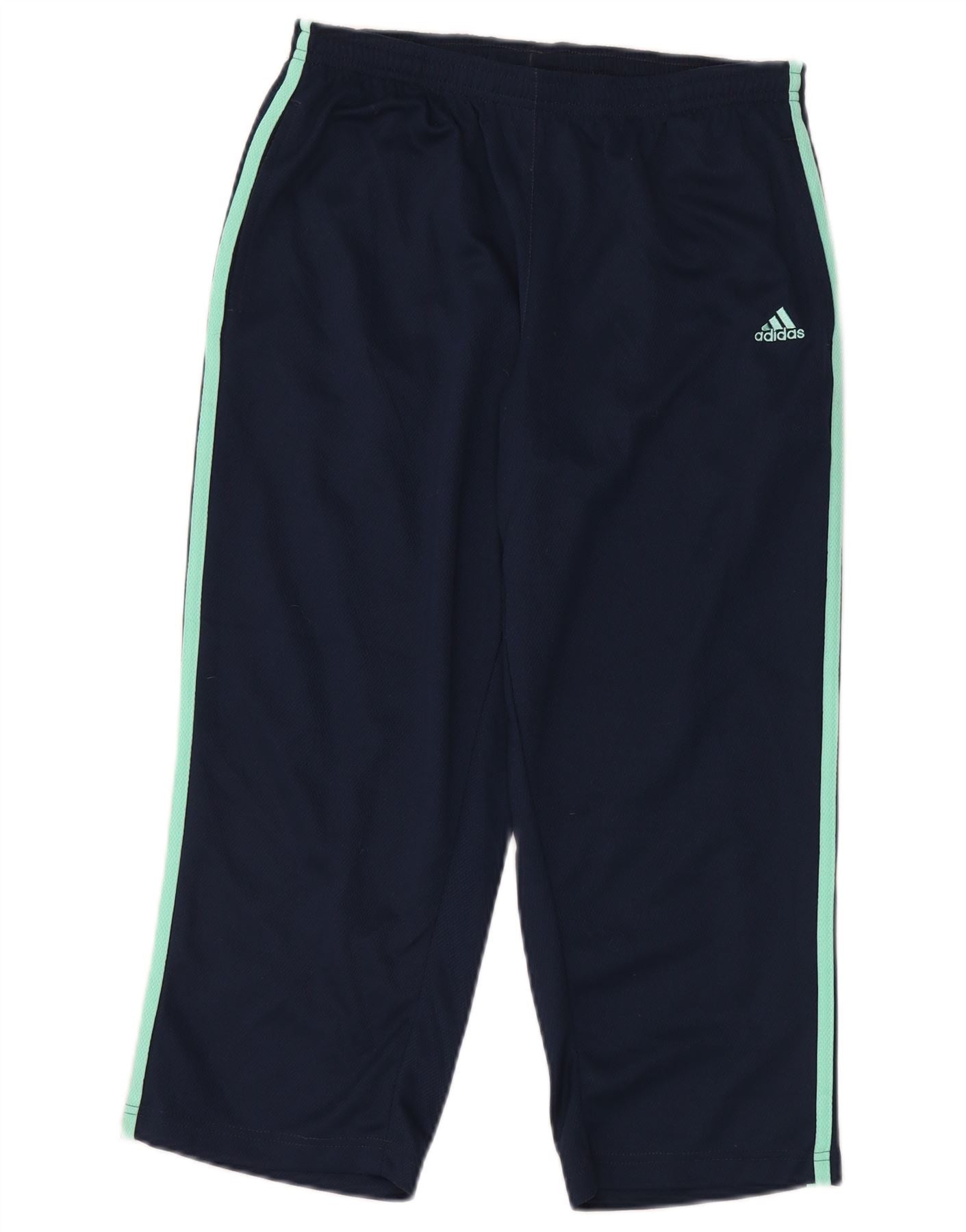 ADIDAS Womens Capri Tracksuit Trousers UK 14 Large Navy Blue Polyester