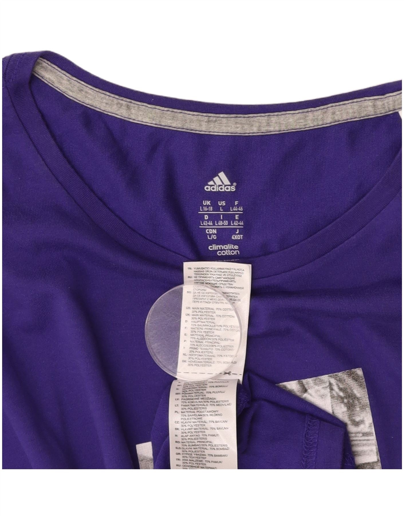 ADIDAS Womens Climalite Graphic T-Shirt Top UK 16/18 Large Purple Cotton