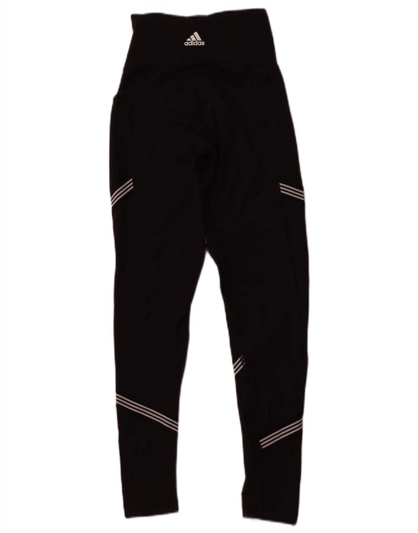 ADIDAS Womens Climalite Leggings UK 6 XS Black Striped Polyester