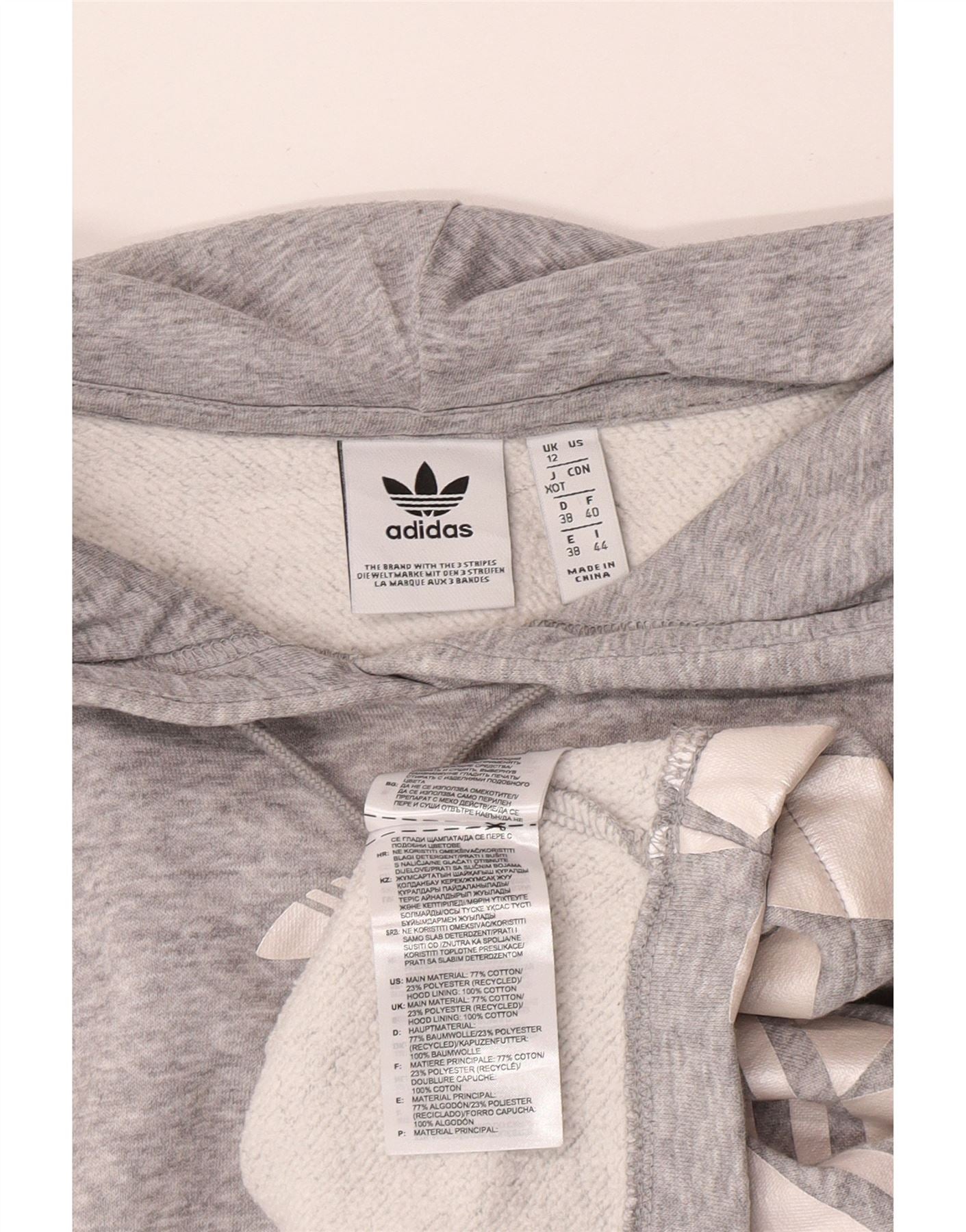 Adidas Womens Crop Graphic Oversized Hoodie Jumper UK 12 Medium Grey Cotton