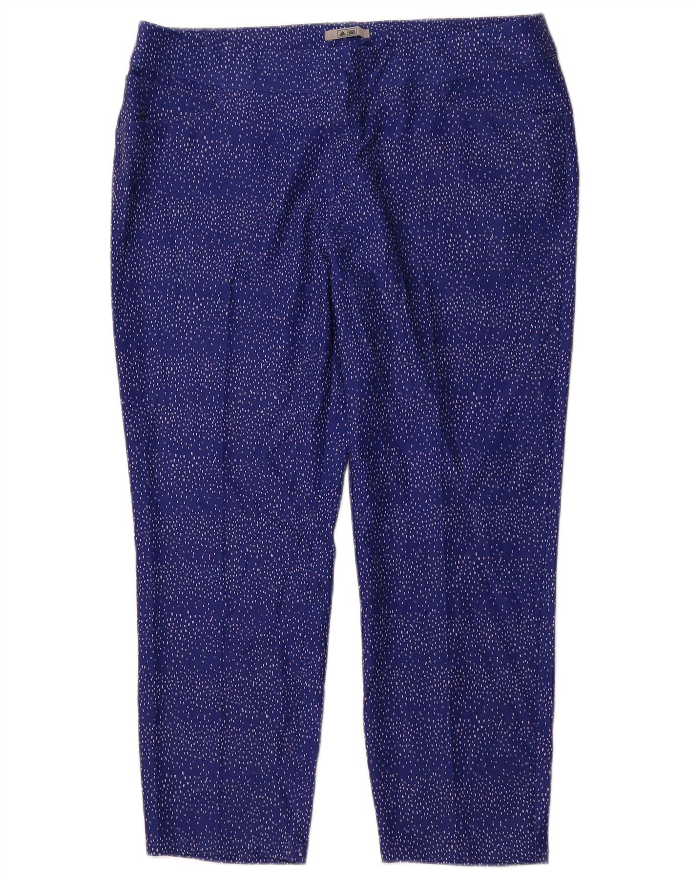 ADIDAS Womens Crop Leggings UK 16 Large Blue Spotted Polyester