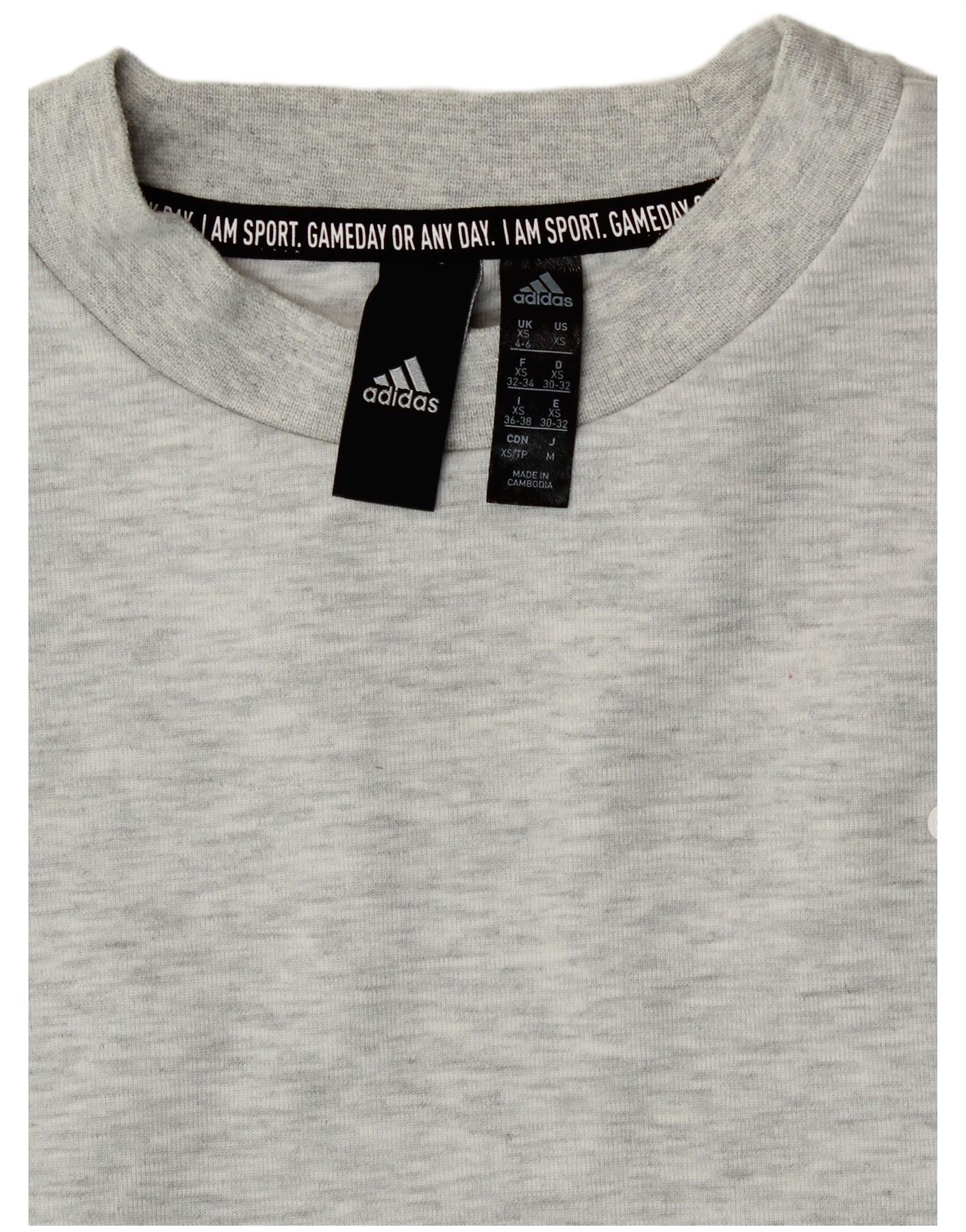 Adidas Womens Crop Oversized Sweatshirt Jumper UK 4/6 XS Grey Cotton