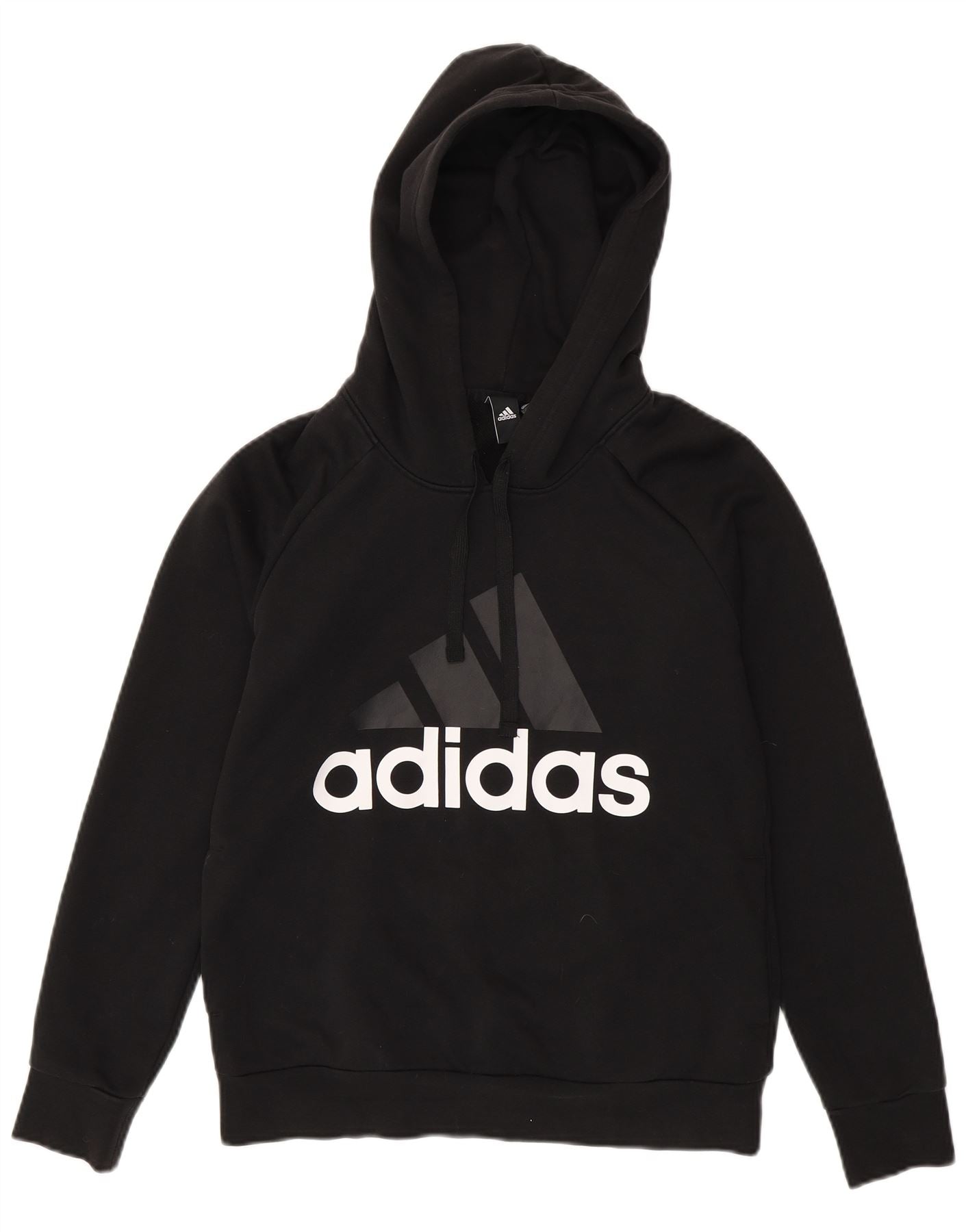 ADIDAS Womens Graphic Hoodie Jumper UK 12/14 Medium Black Cotton