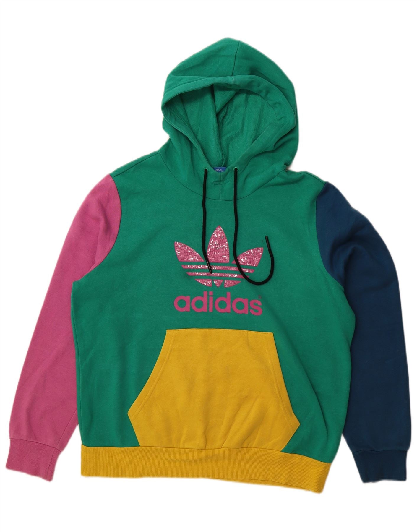 ADIDAS Womens Graphic Hoodie Jumper UK 18 XL Multicoloured Colourblock