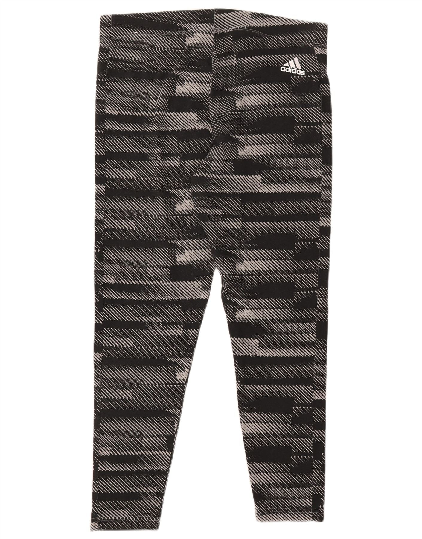 ADIDAS Womens Graphic Leggings UK 16/18 Large Black Striped Cotton