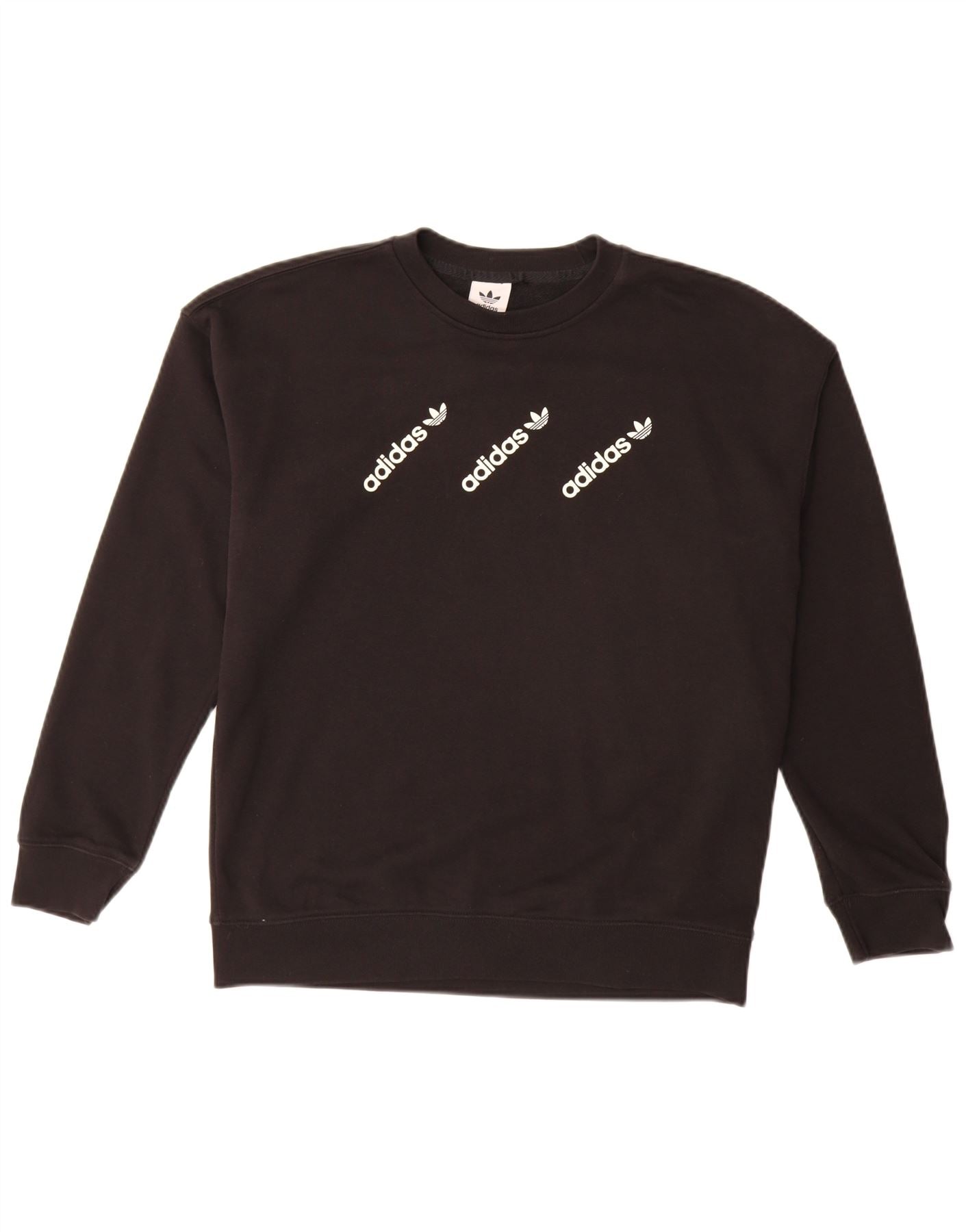 ADIDAS Womens Graphic Sweatshirt Jumper UK 14 Large Black Cotton
