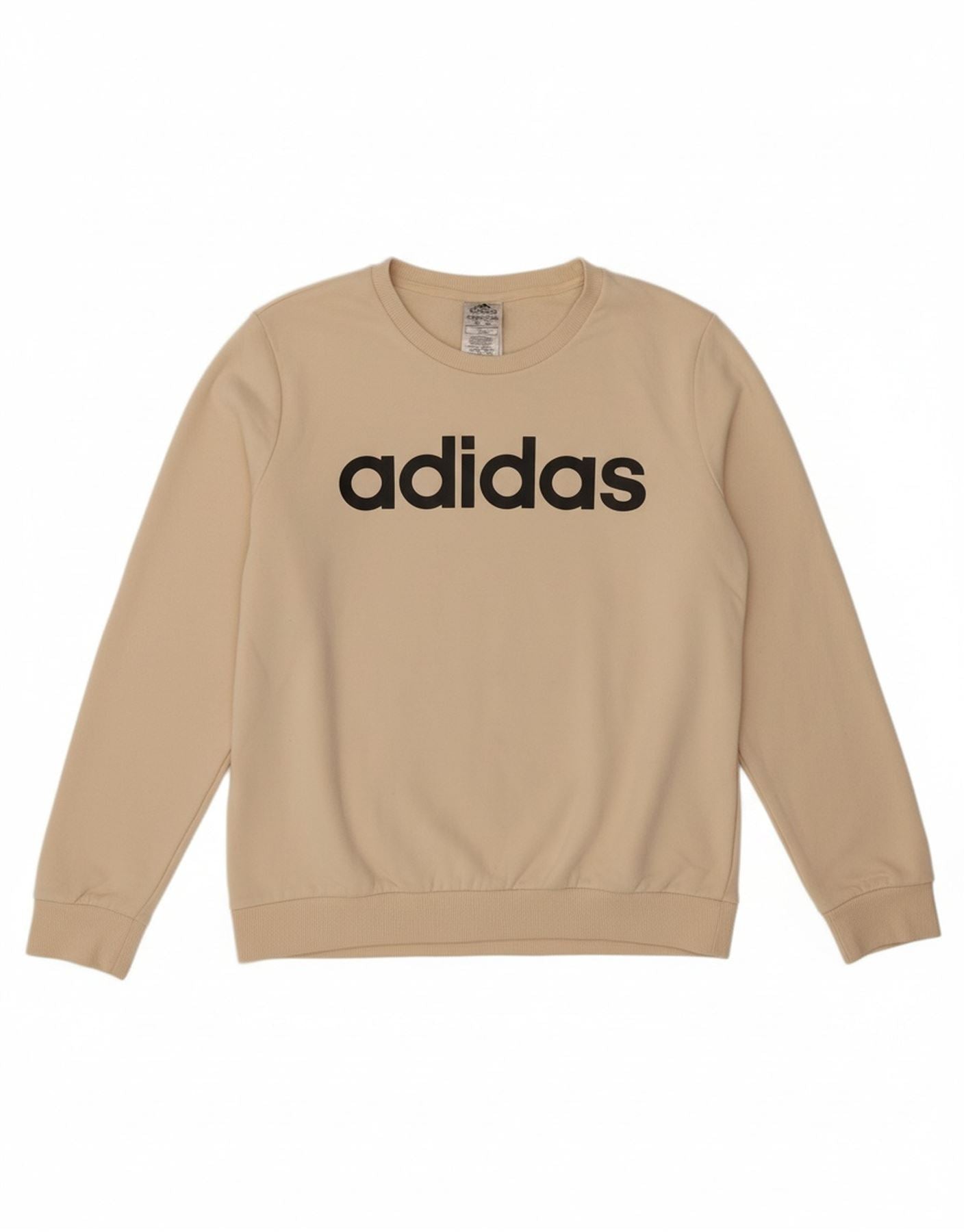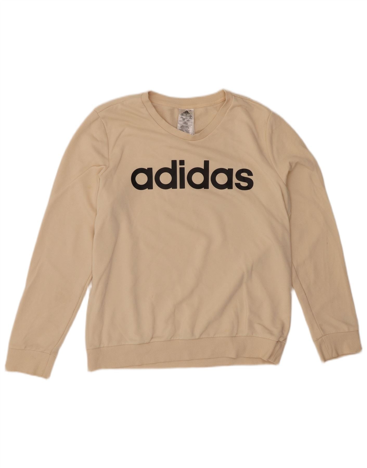 ADIDAS Womens Graphic Sweatshirt Jumper UK 16/18 Large Beige Cotton