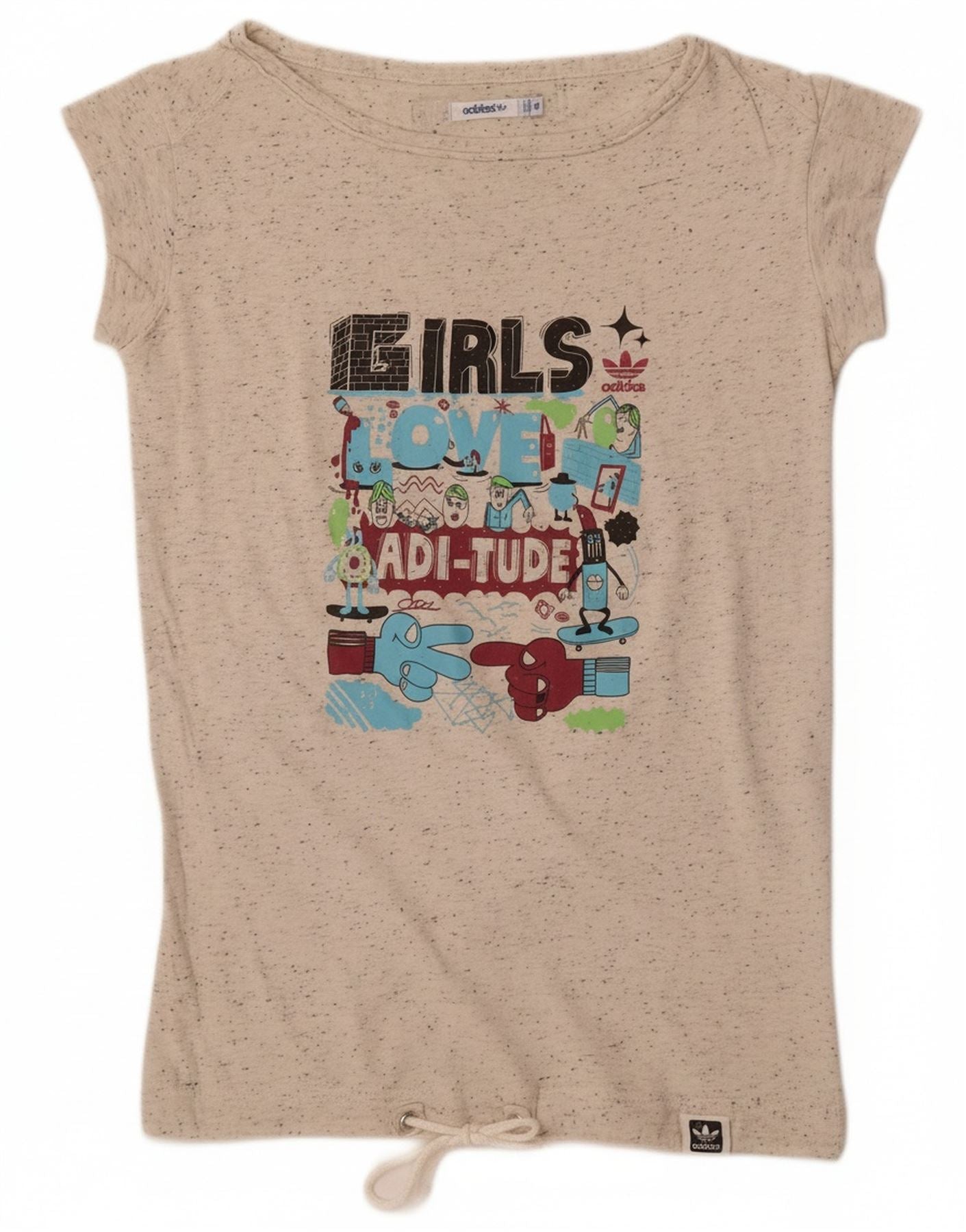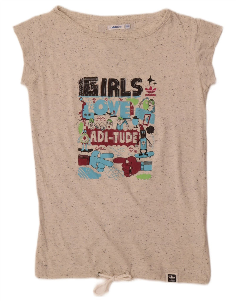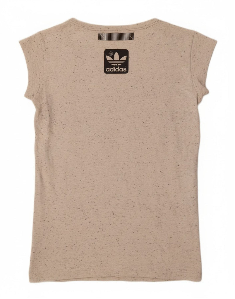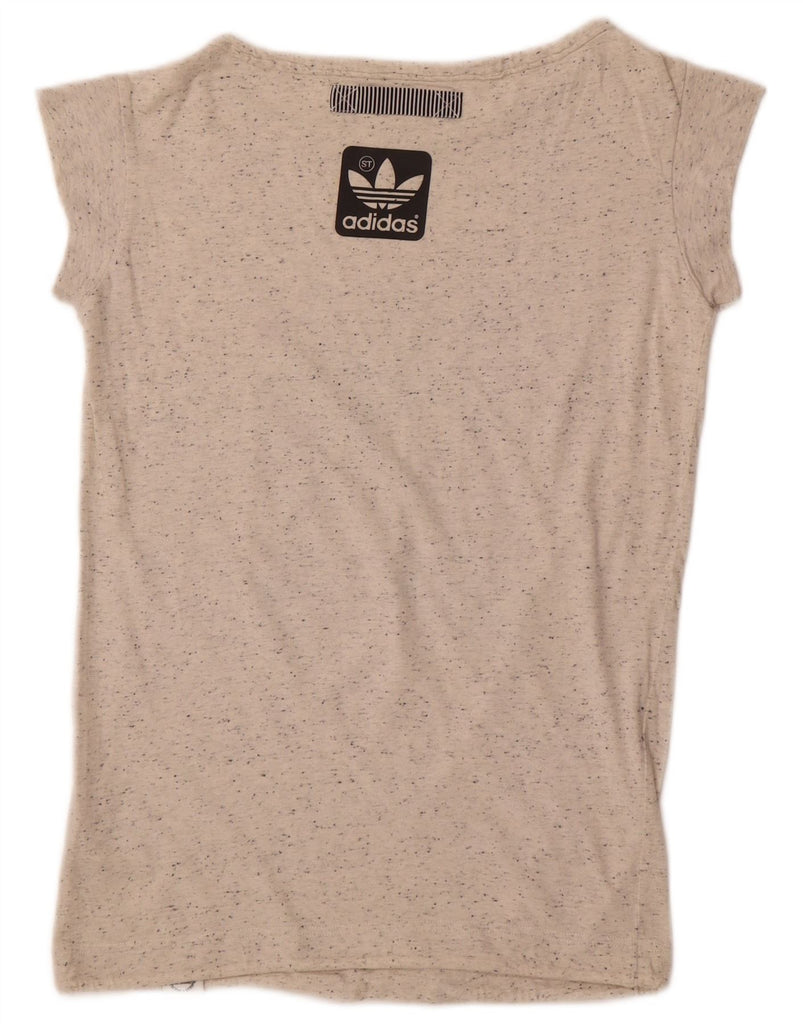 ADIDAS Womens Graphic T-Shirt Top EU 40 Medium Off White Flecked Cotton