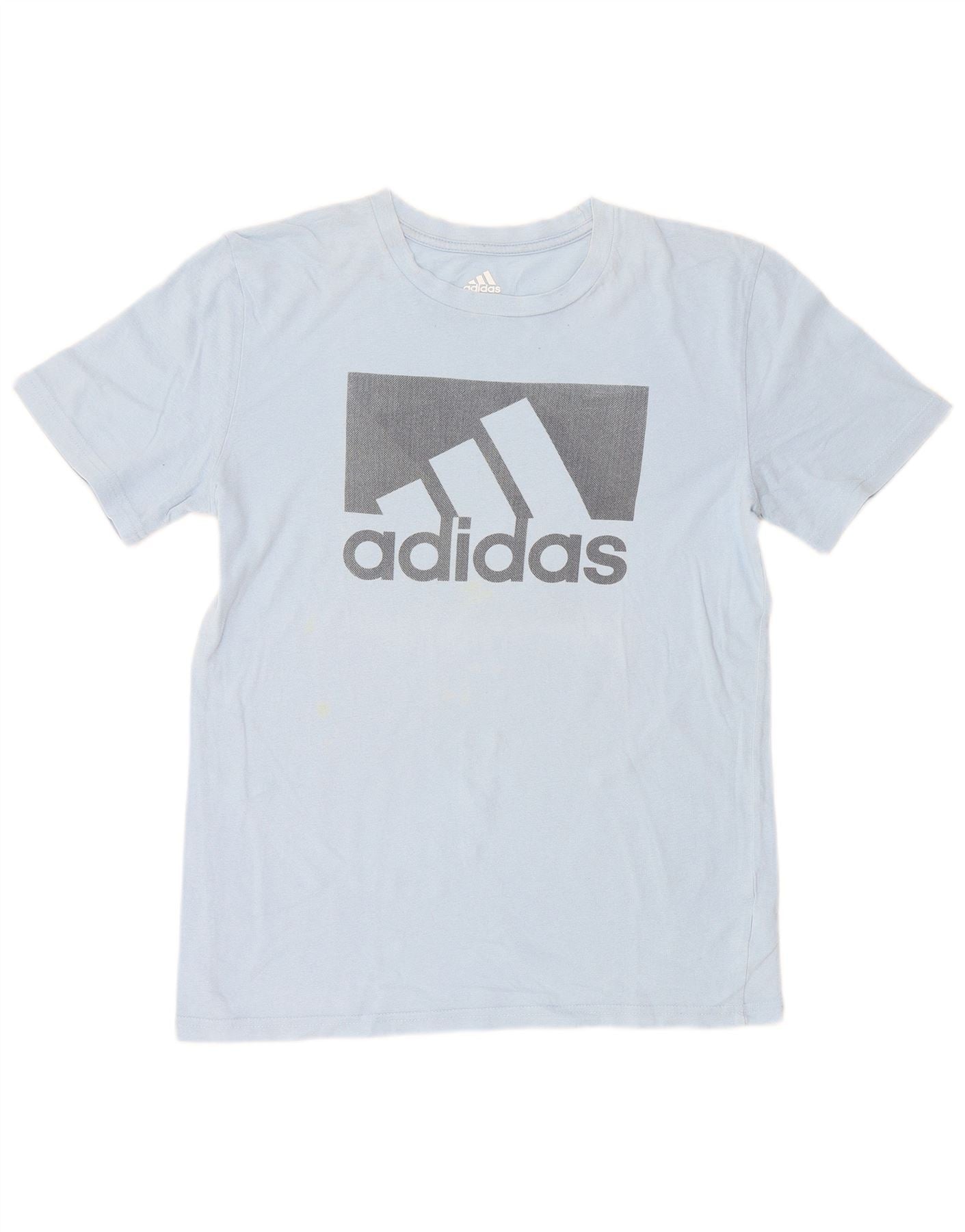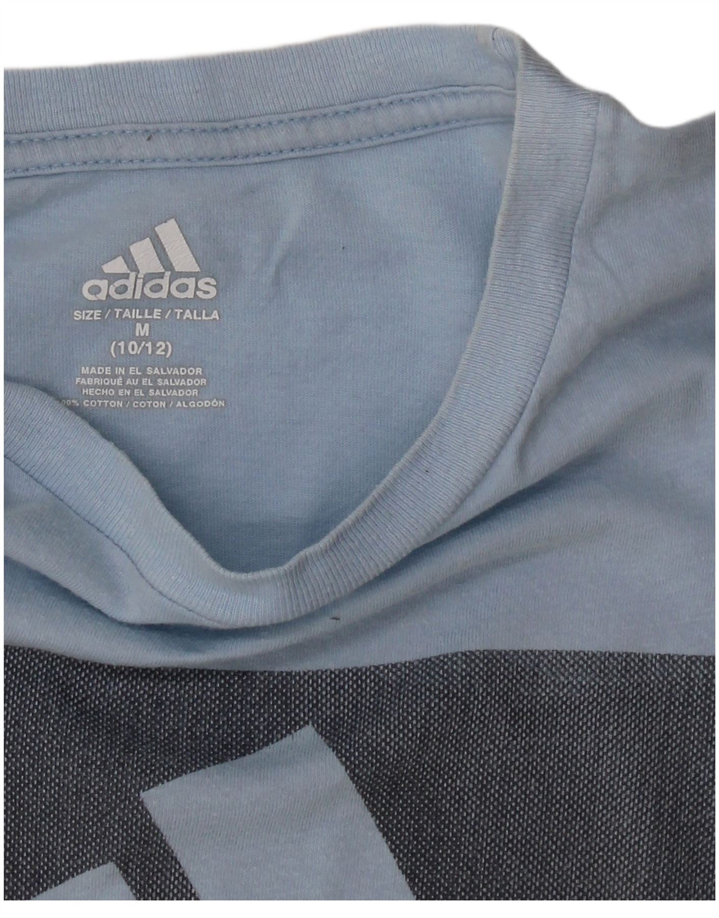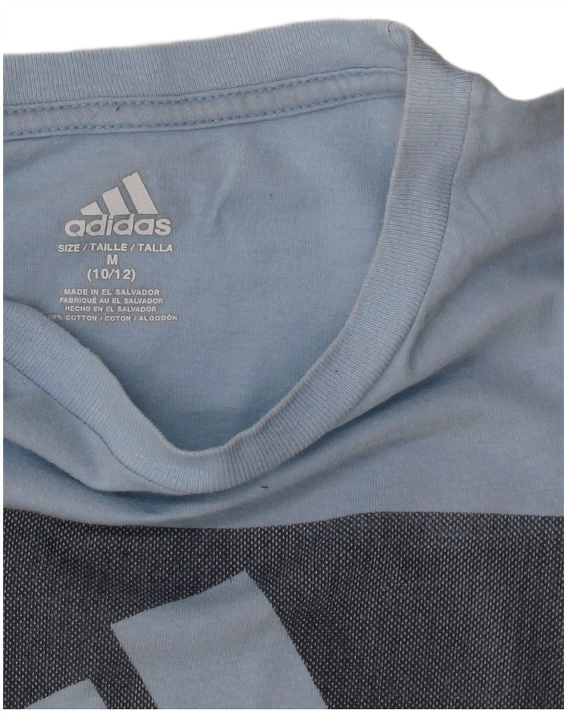 ADIDAS Womens Graphic T-Shirt Top UK 12 Medium Blue Cotton Sports
