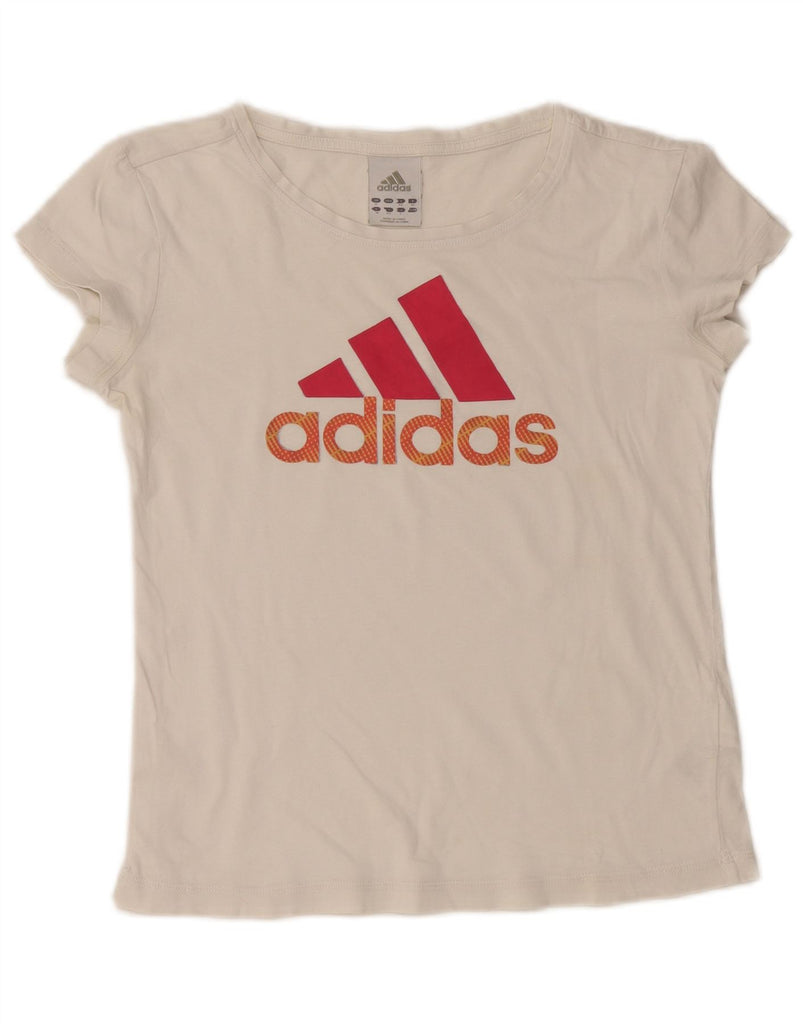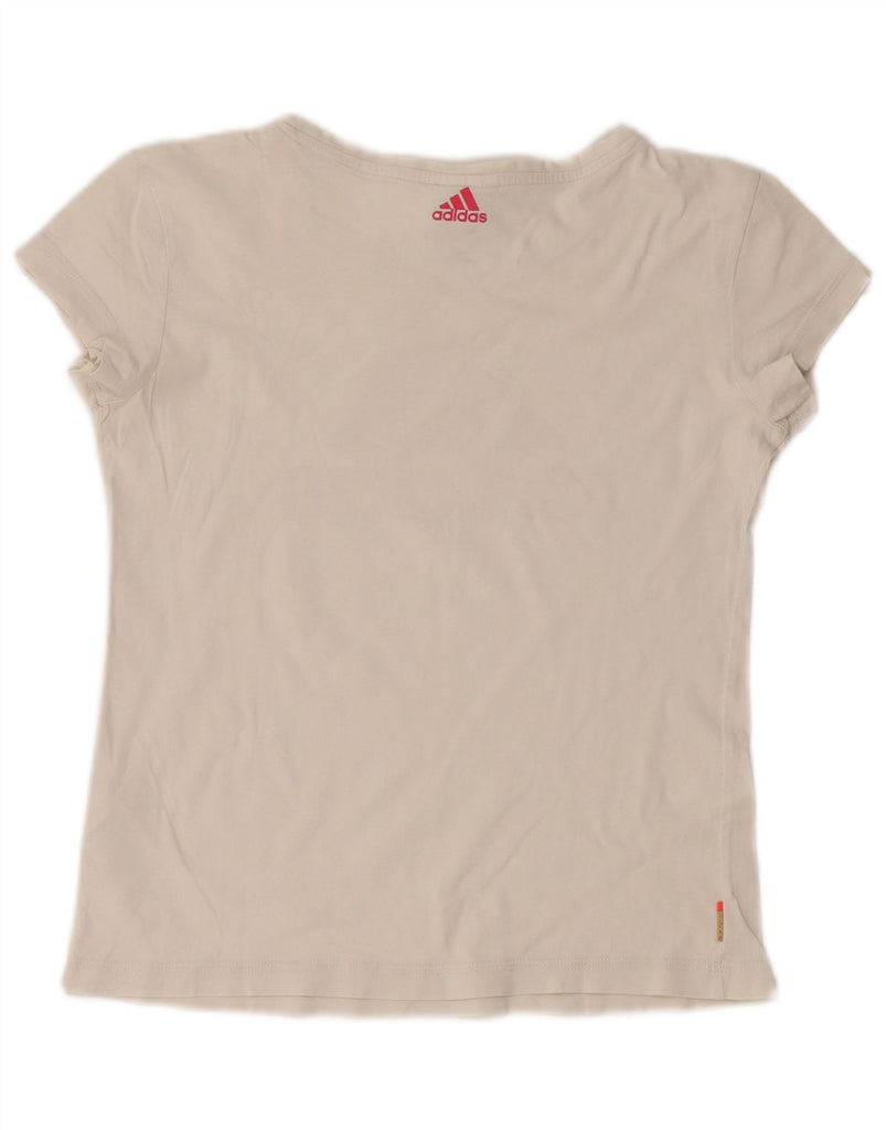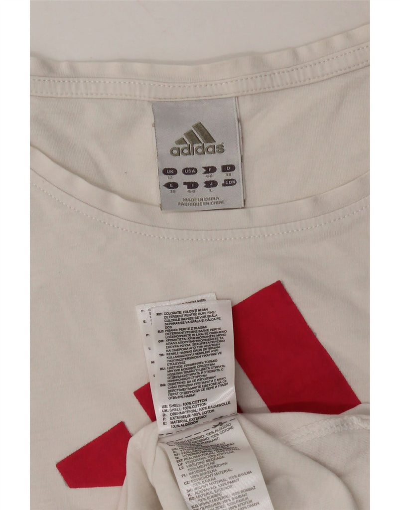 ADIDAS Womens Graphic T-Shirt Top UK 12 Medium Off White Cotton Sports