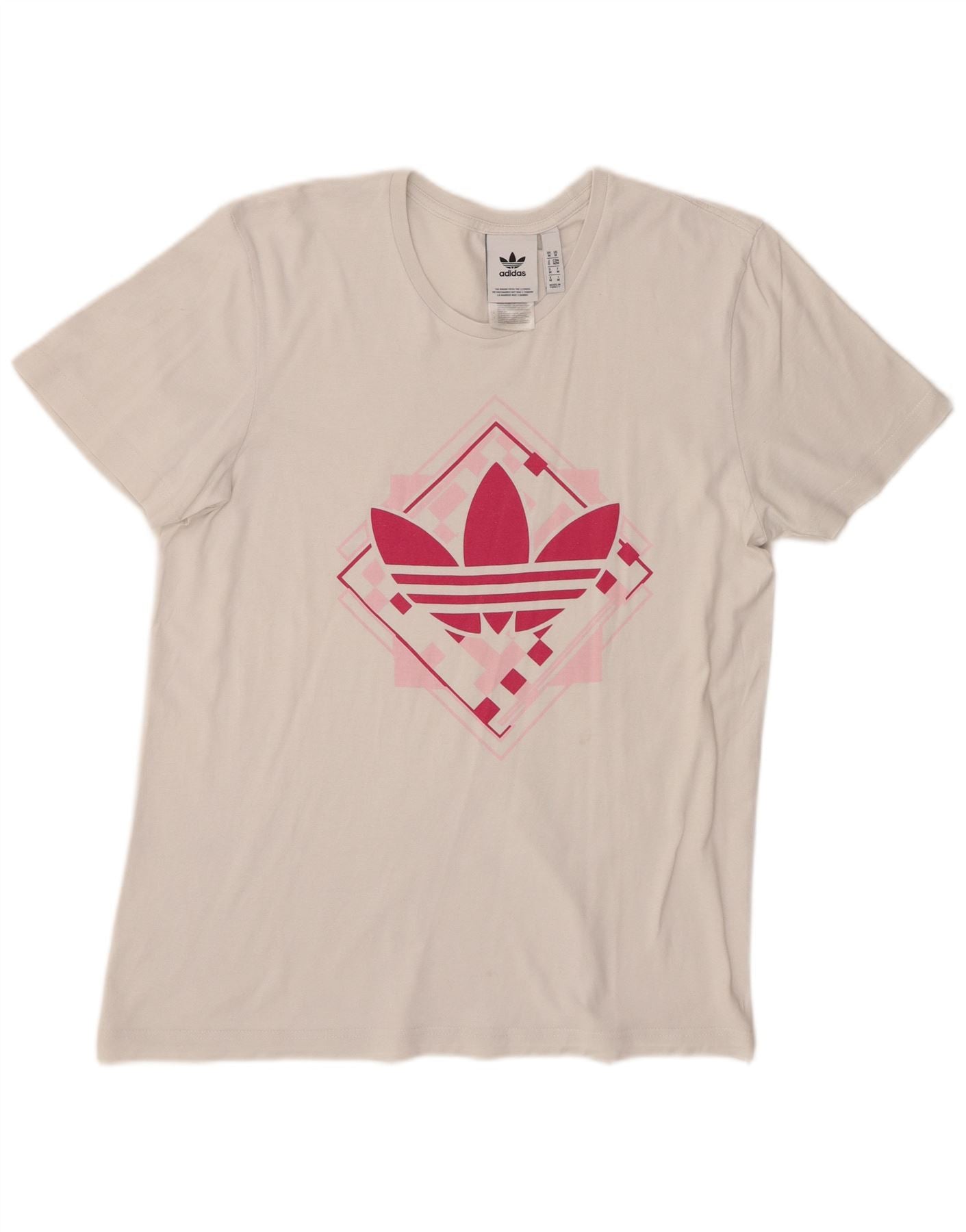 Adidas Womens Graphic T-Shirt Top UK 14 Medium White Cotton