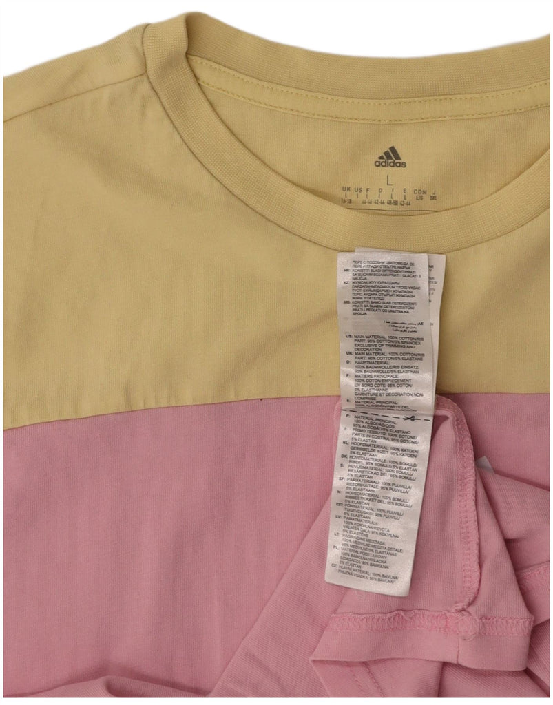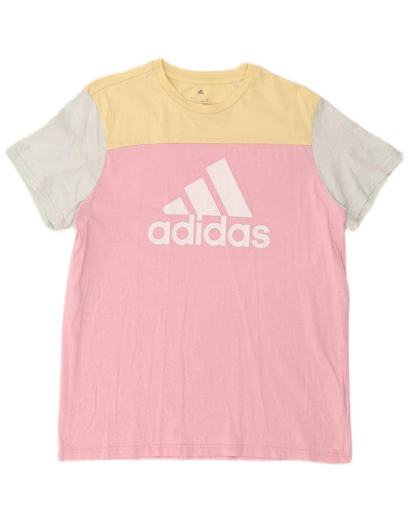 ADIDAS Womens Graphic T-Shirt Top UK 16/18 Large Pink Colourblock Cotton