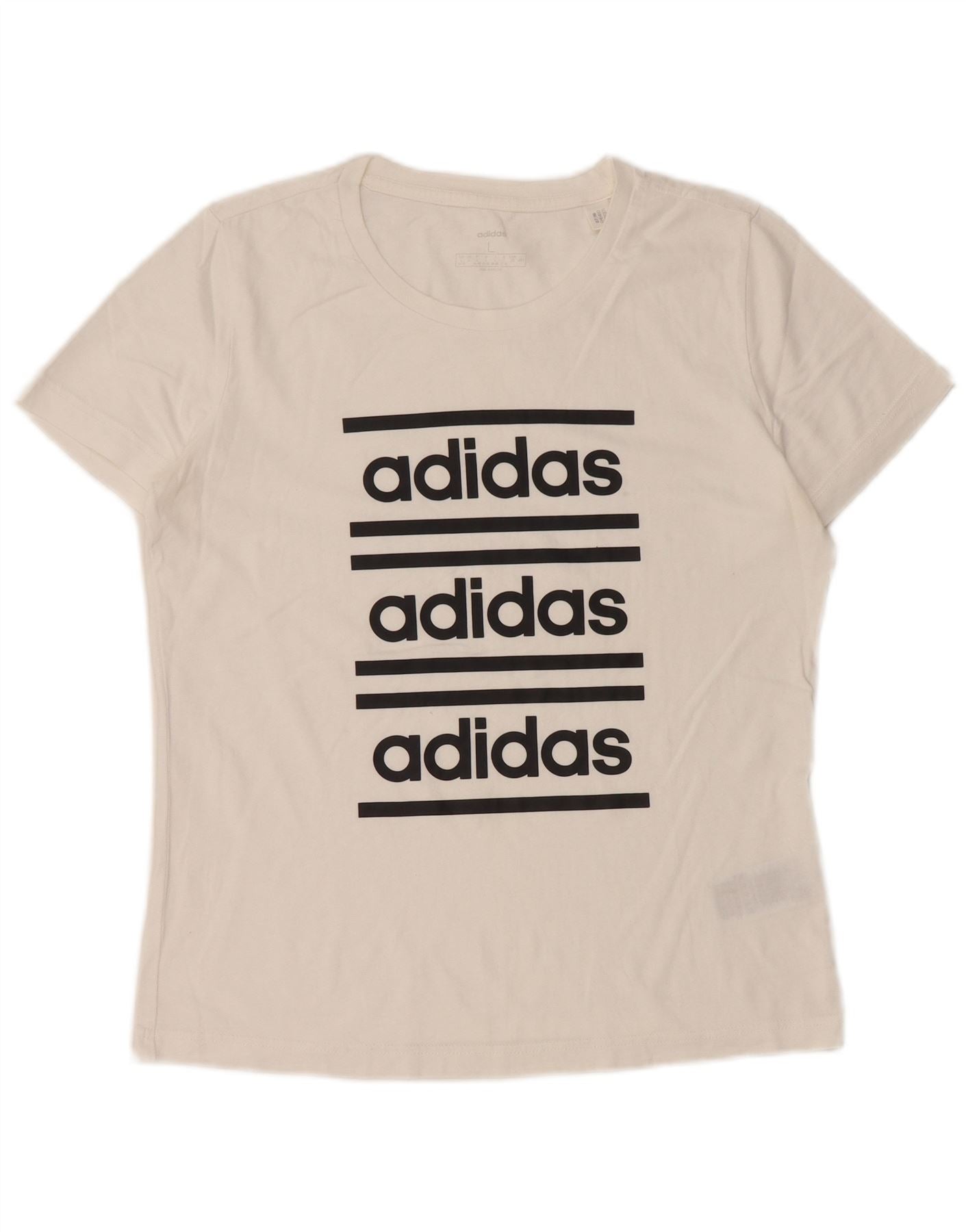 ADIDAS Womens Graphic T-Shirt Top UK 16/18 Large White Cotton