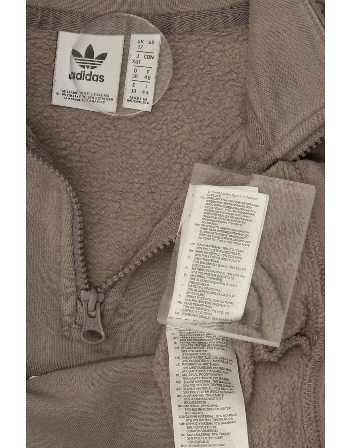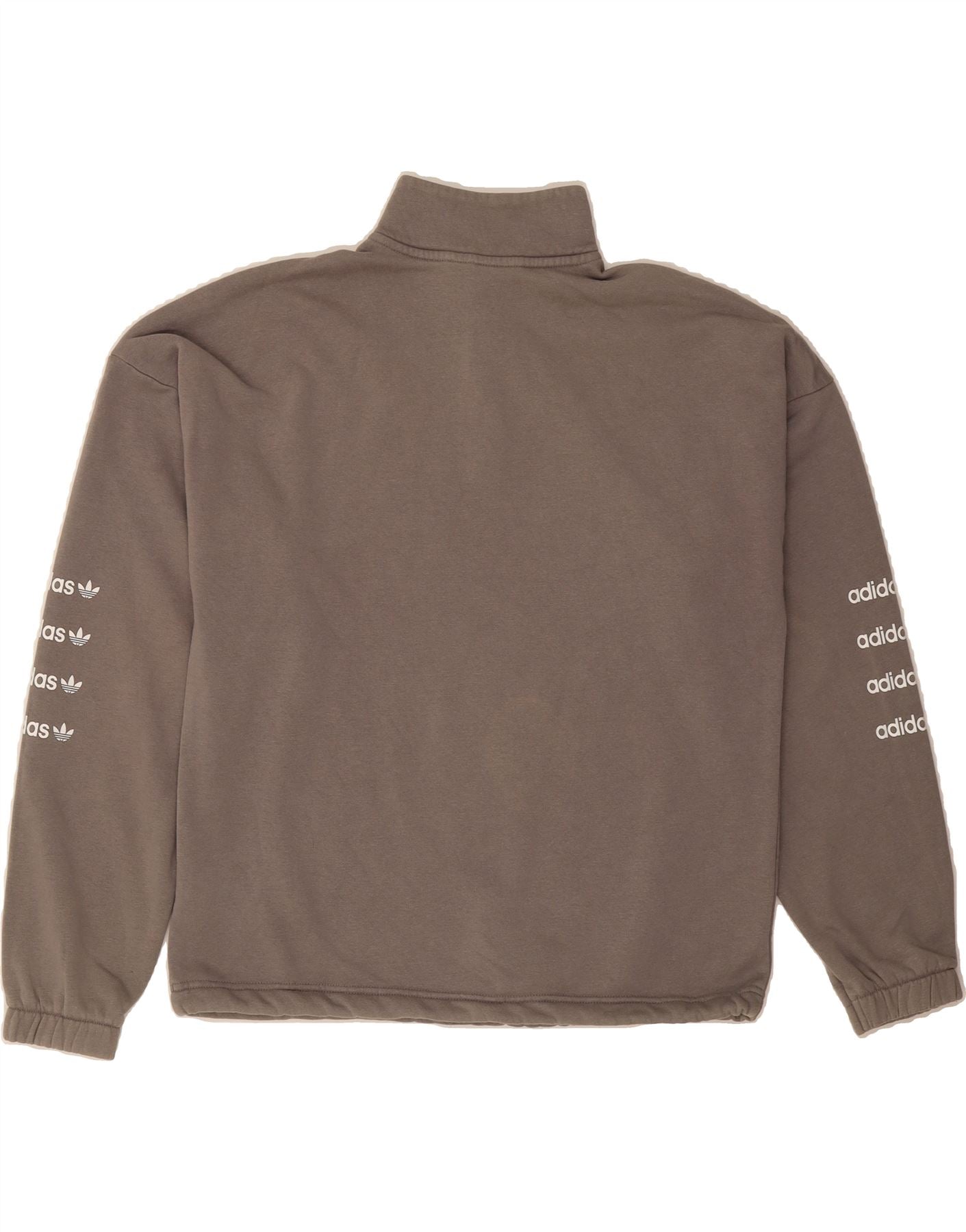 ADIDAS Womens Graphic Zip Neck Sweatshirt Jumper UK 12 Medium Grey Cotton
