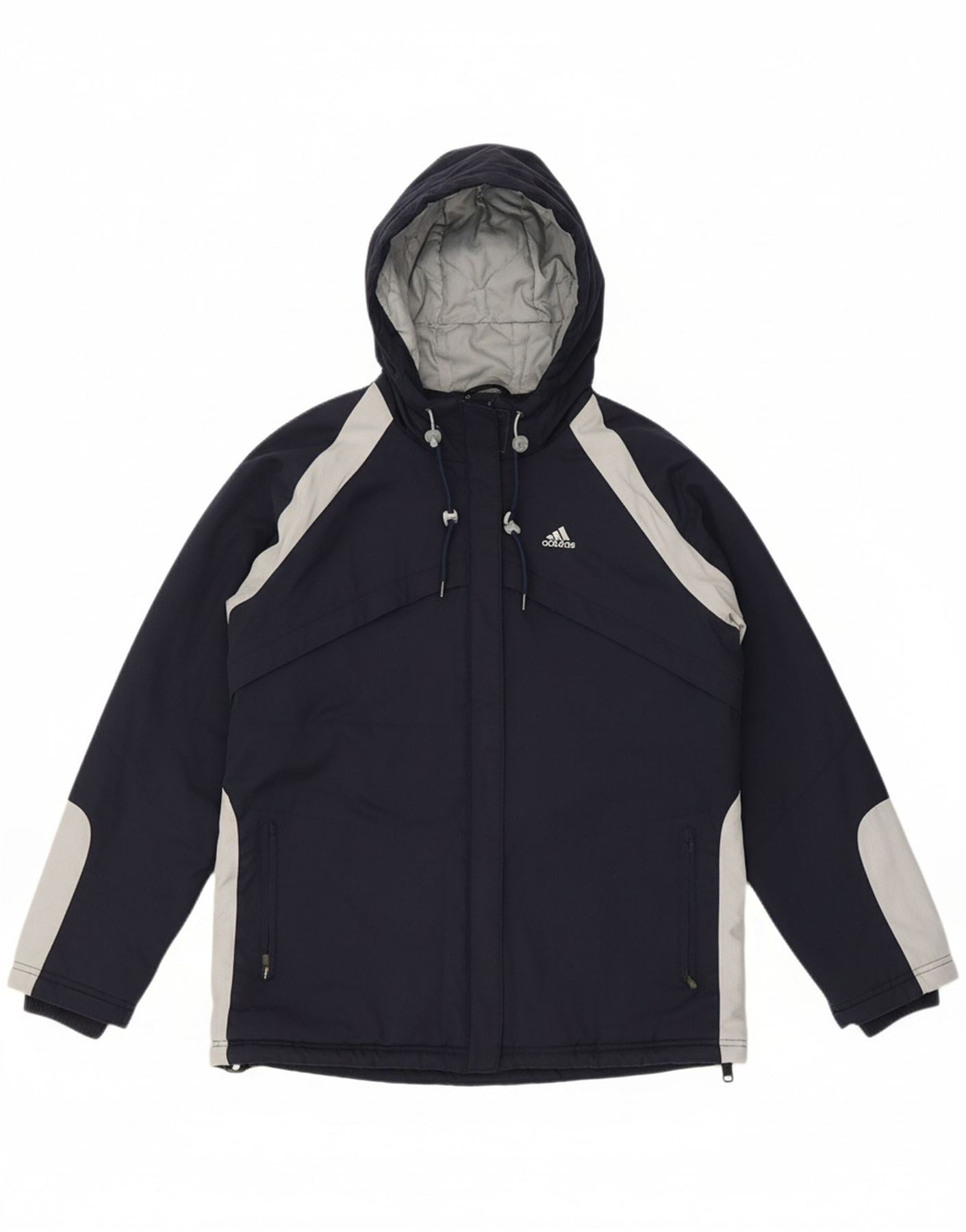 ADIDAS Womens Hooded Windbreaker Jacket UK 12 Medium Navy Blue Colourblock