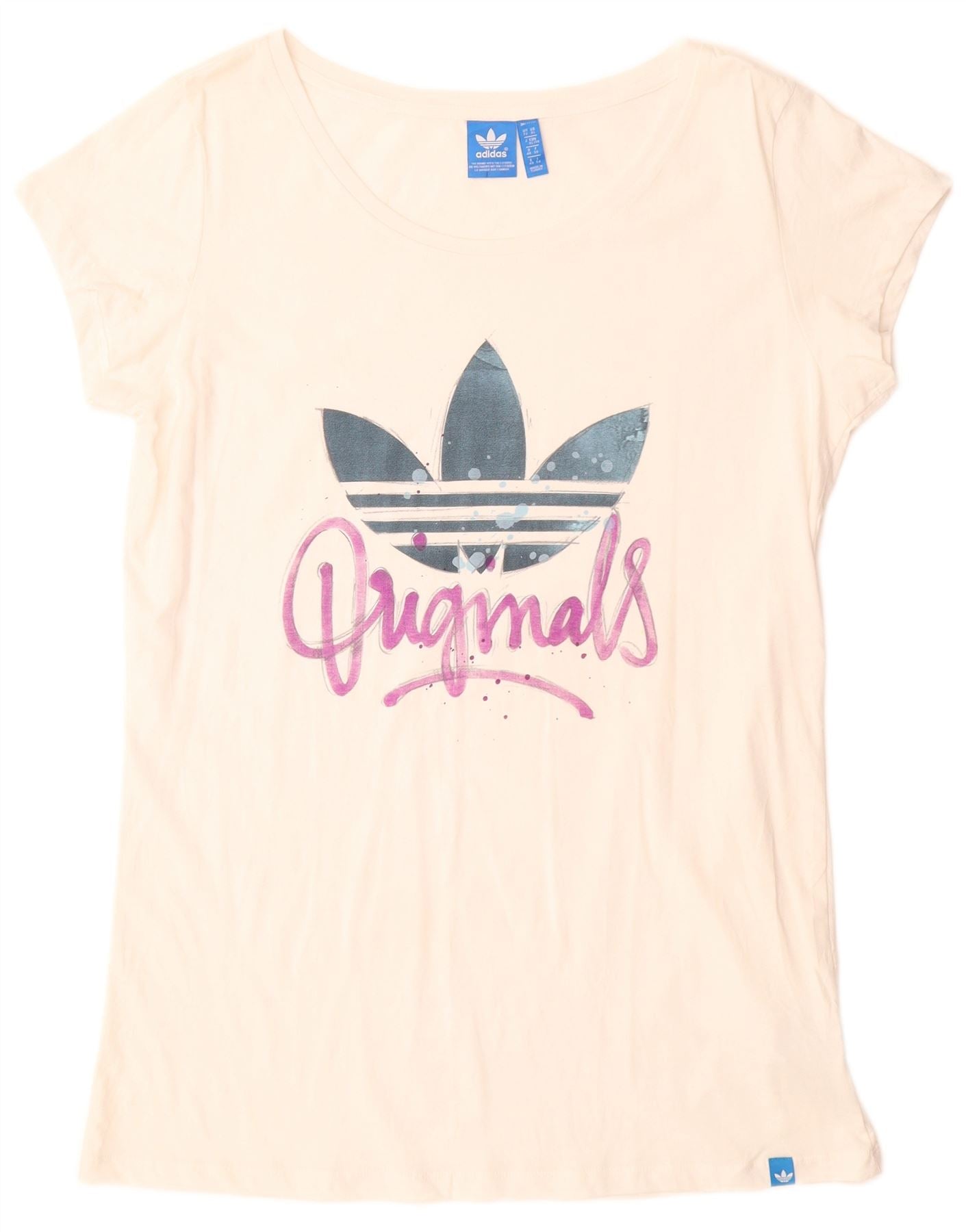 ADIDAS Womens Longline Graphic T-Shirt Top UK 22 XL White Cotton