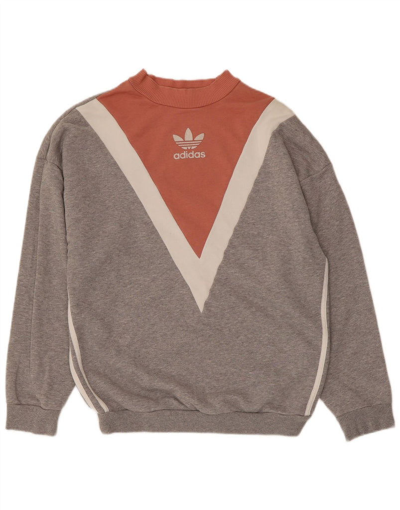 ADIDAS Womens Loose Fit Sweatshirt Jumper UK 12 Medium Grey Colourblock