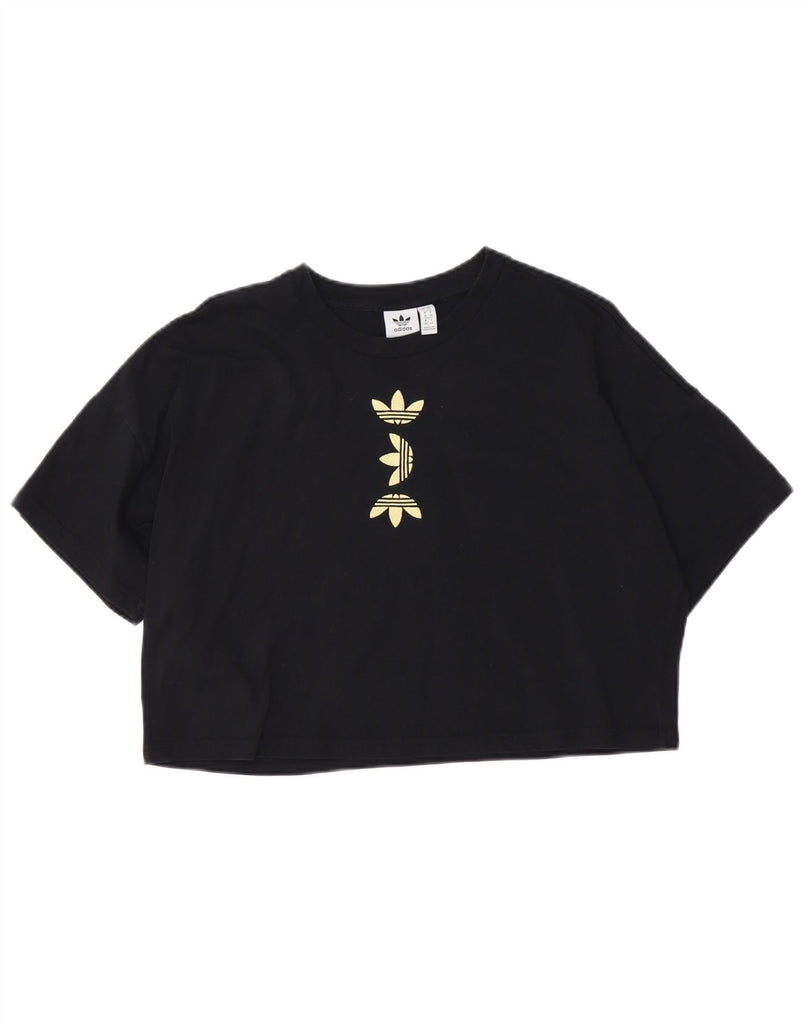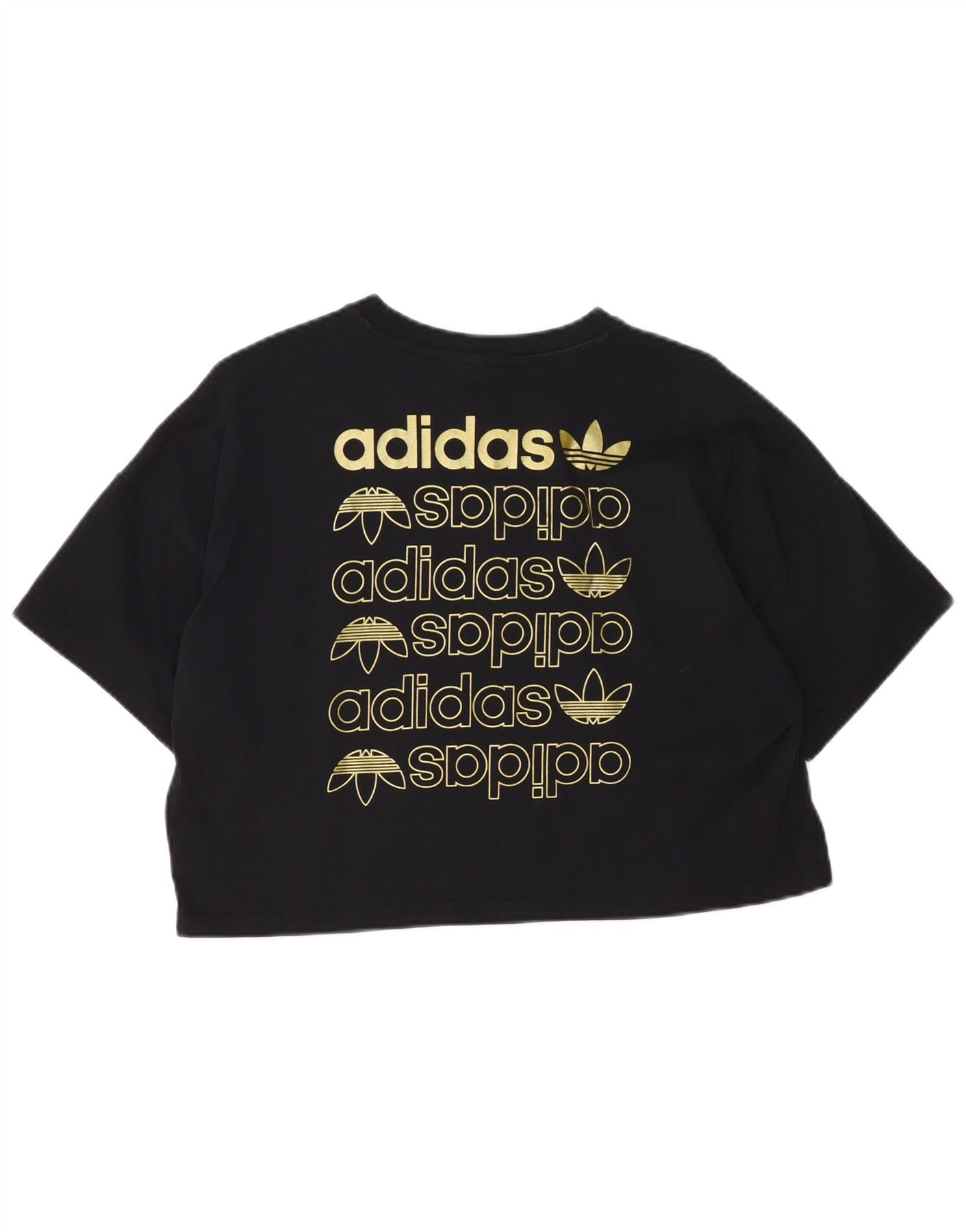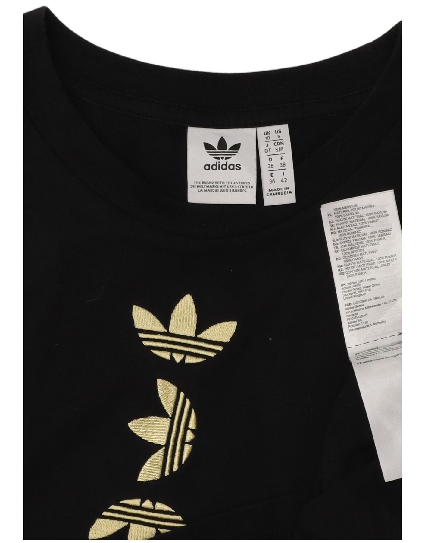 ADIDAS Womens Oversized Crop Graphic T-Shirt Top UK 10 Small Black Cotton