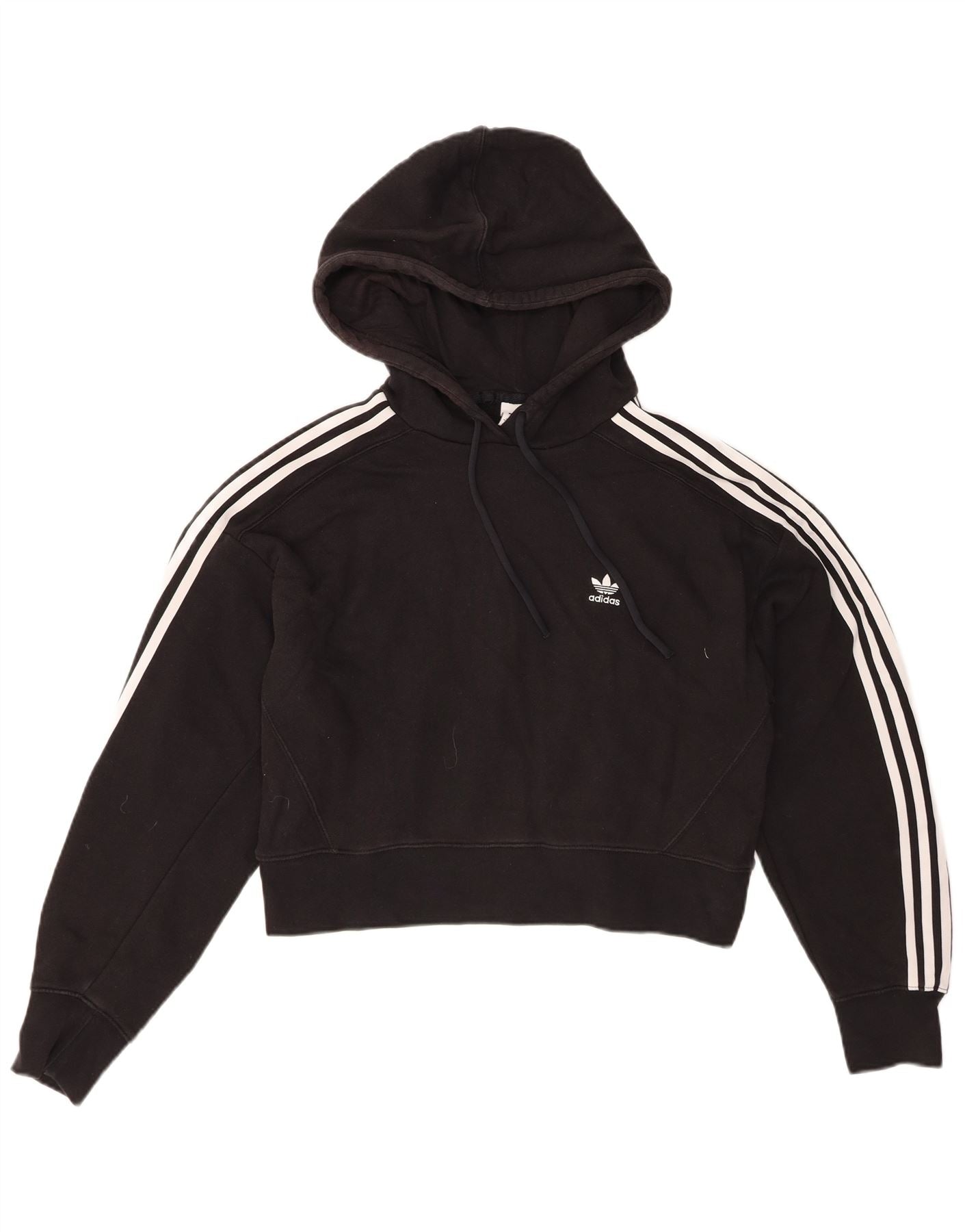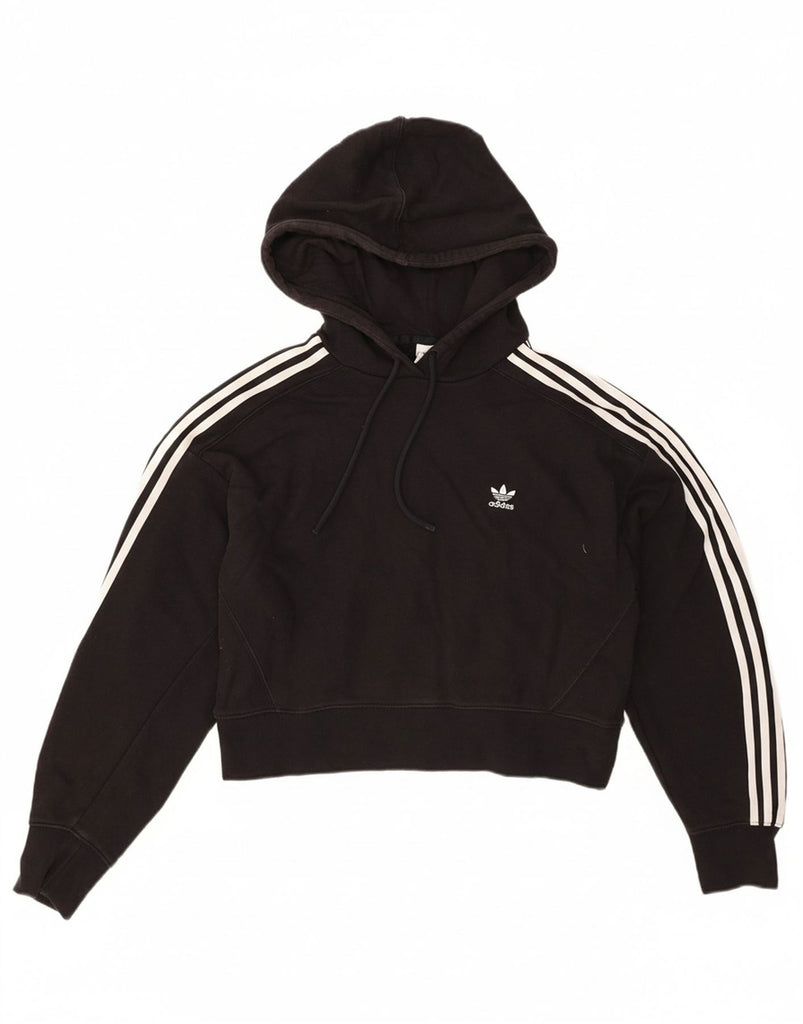 ADIDAS Womens Oversized Crop Hoodie Jumper UK 10 Small Black Cotton