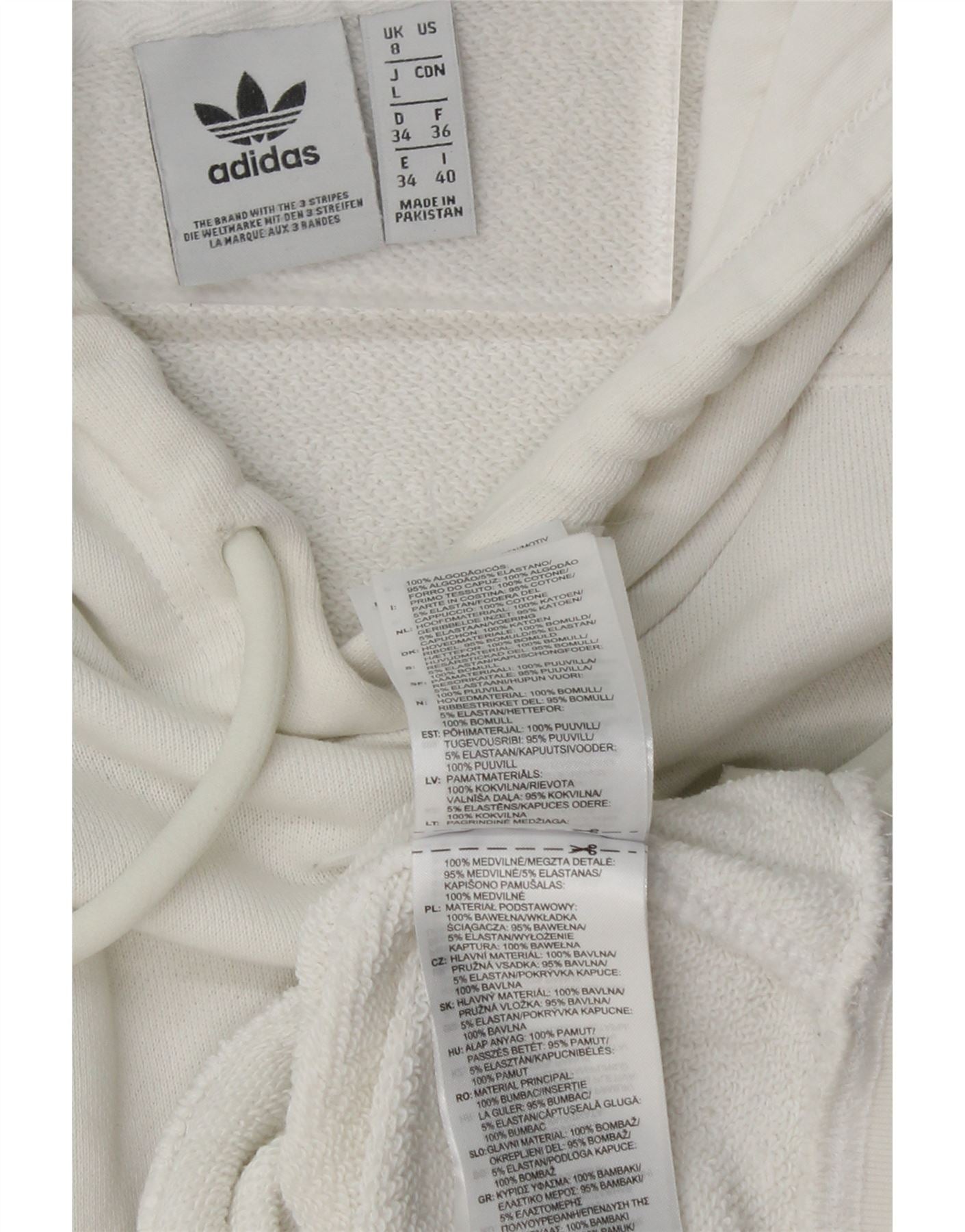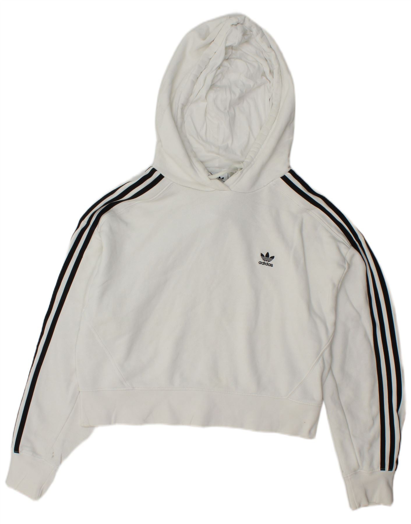 ADIDAS Womens Oversized Crop Hoodie Jumper UK 8 Small White Cotton