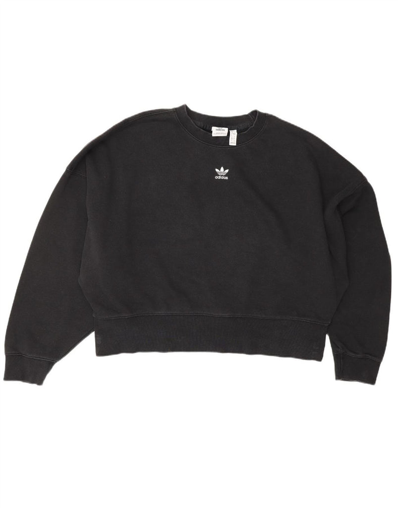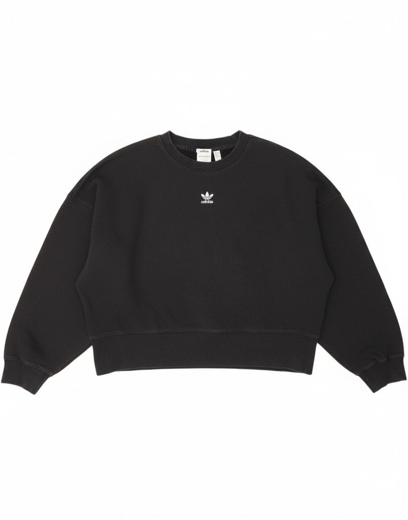 ADIDAS Womens Oversized Crop Sweatshirt Jumper UK 8 Small Black Cotton