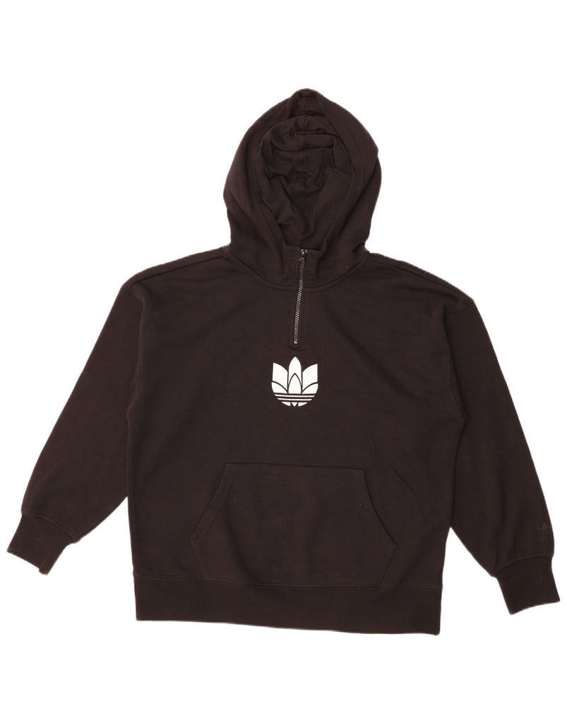 ADIDAS Womens Oversized Graphic Oversized Hoodie Jumper UK 6 XS Black