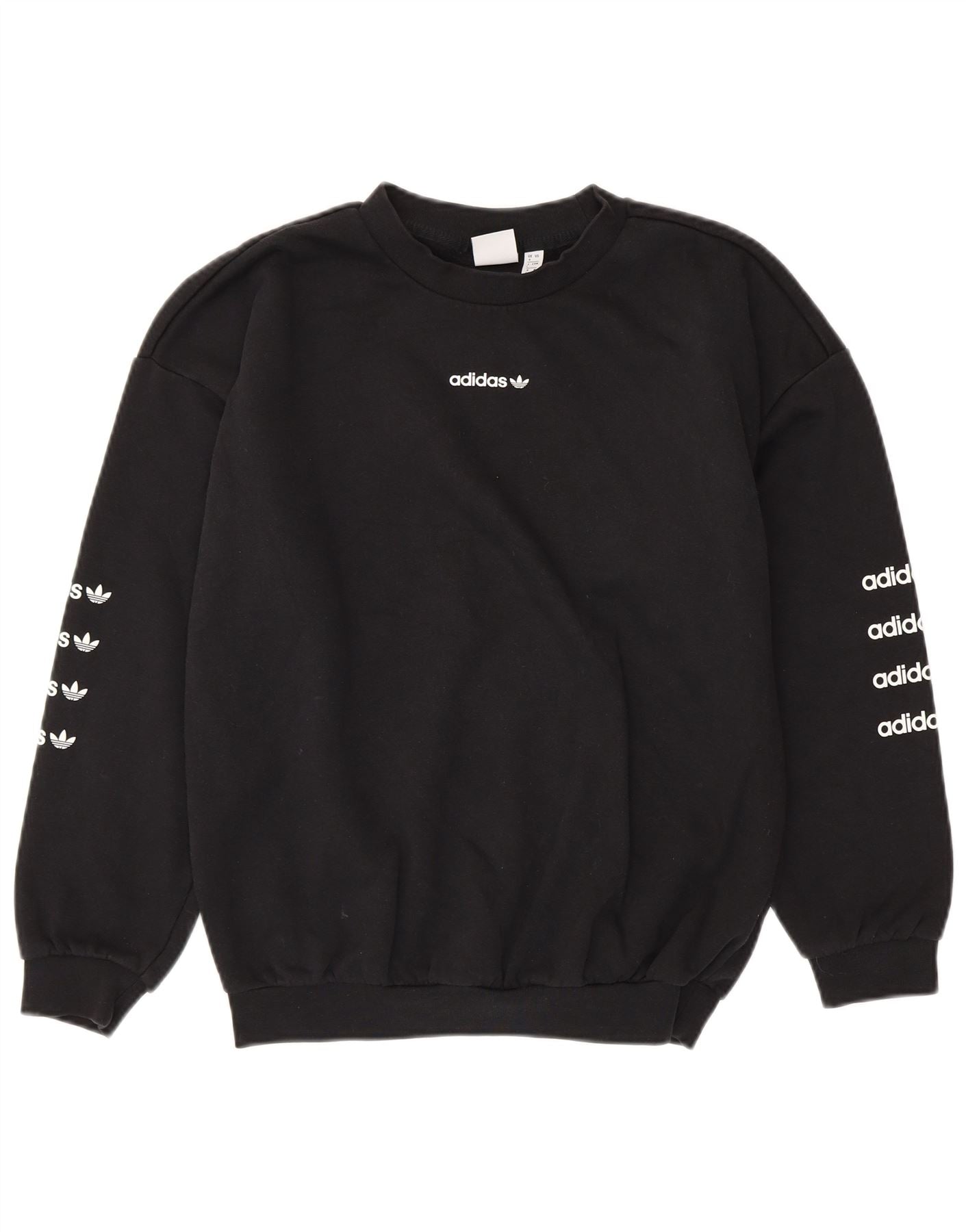 ADIDAS Womens Oversized Graphic Sweatshirt Jumper UK 8 Small Black Cotton