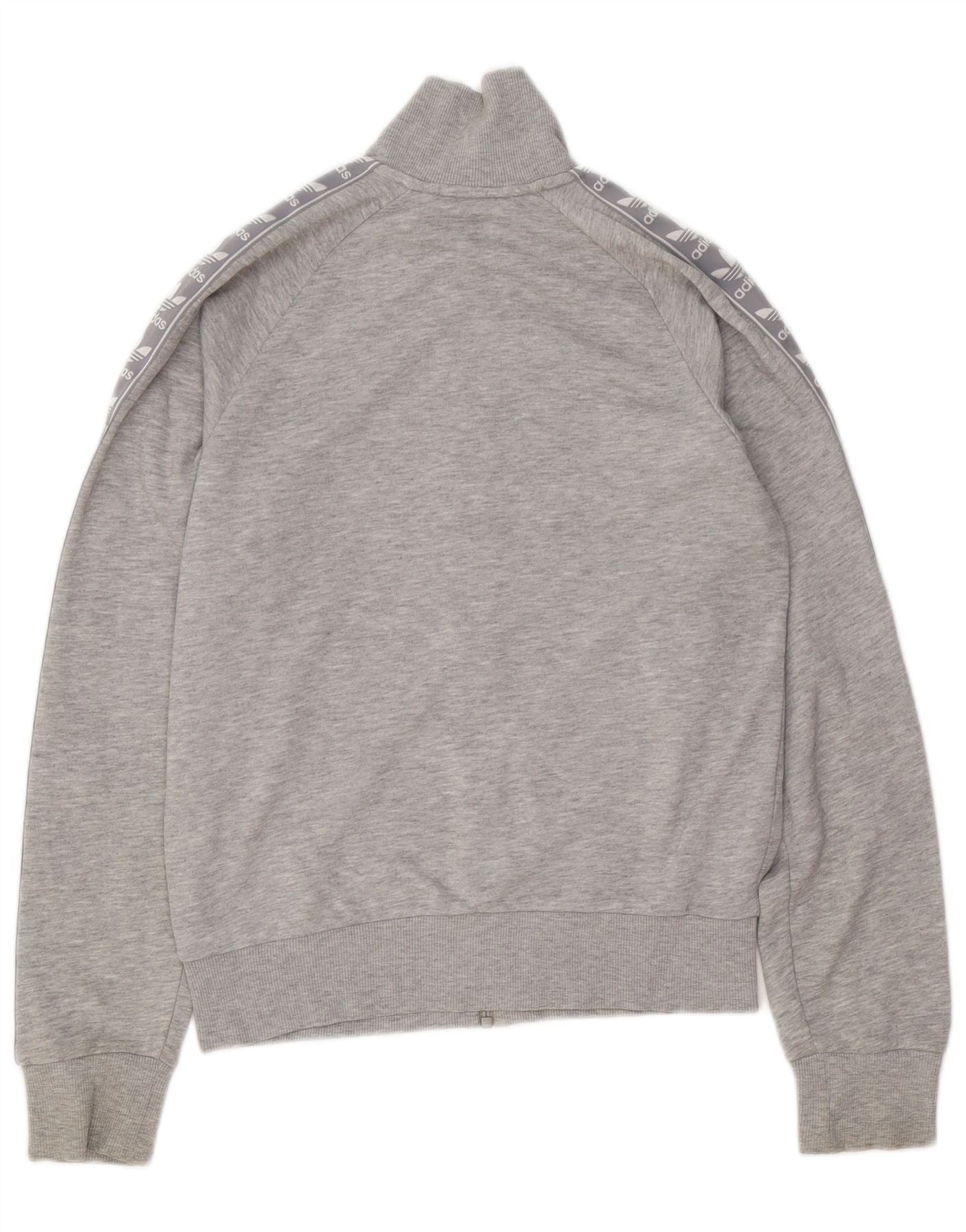 ADIDAS Womens Oversized Graphic Tracksuit Top Jacket UK 6 XS Grey Cotton