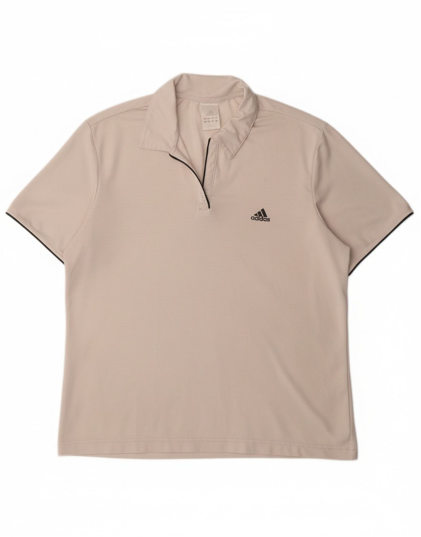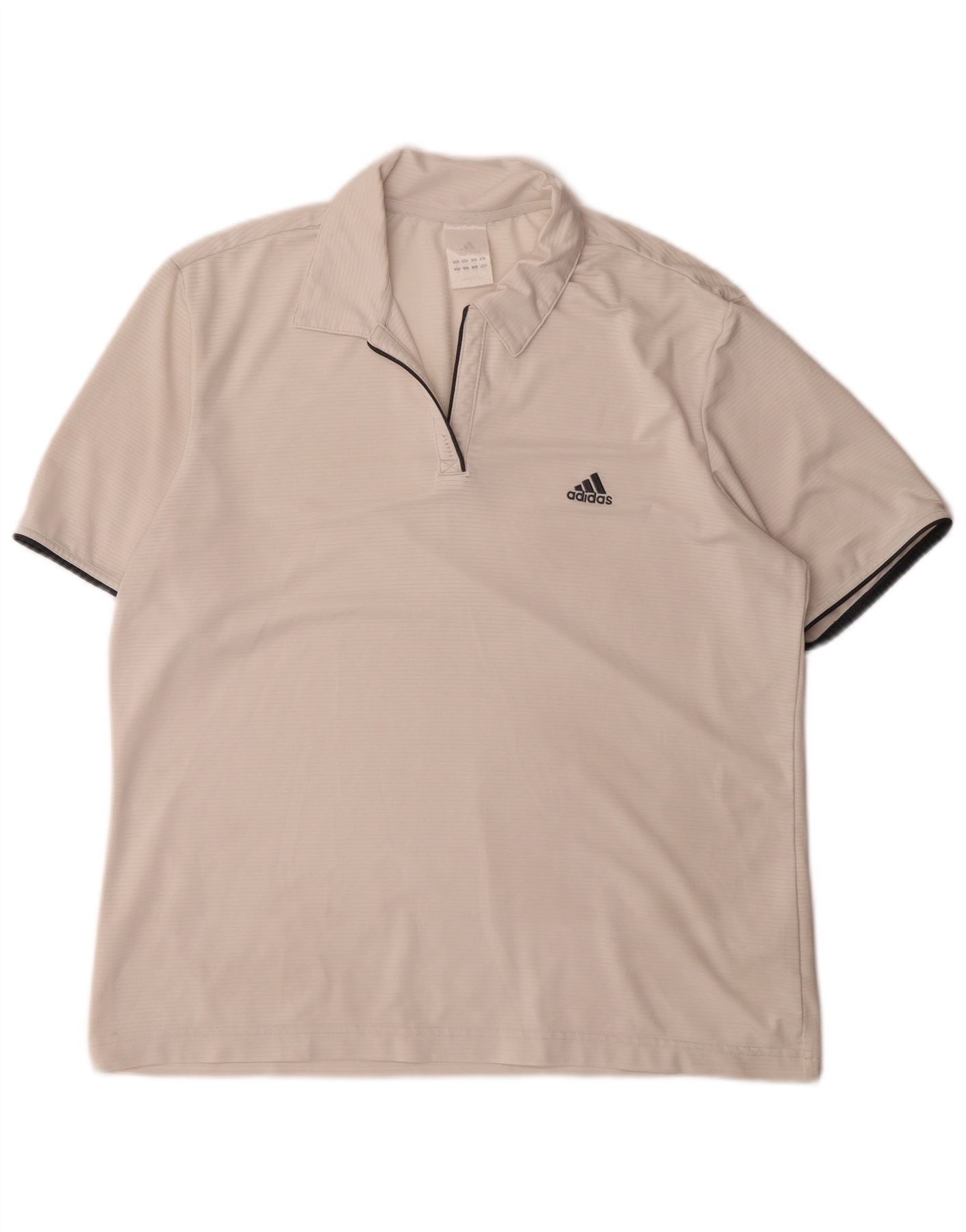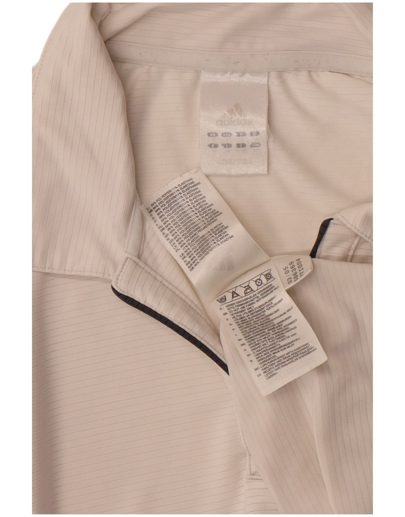 ADIDAS Womens Polo Shirt UK 16 Large Off White Striped Polyester