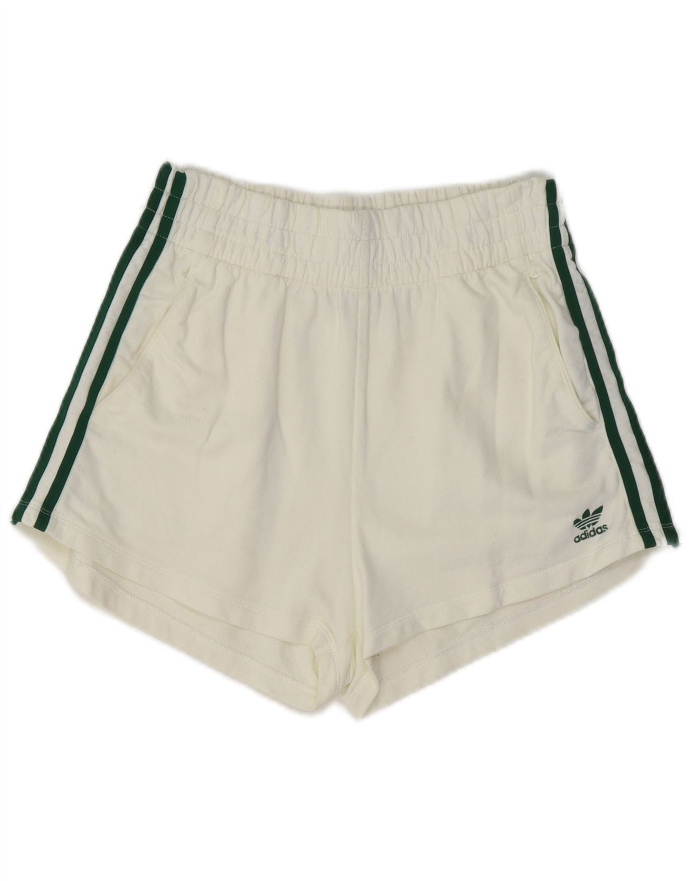 ADIDAS Womens Sport Shorts UK 12 Medium Off White Colourblock Cotton