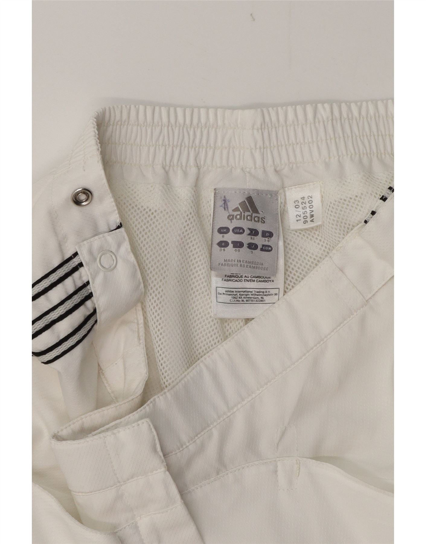 - AI Description: This Adidas womens full tracksuit is crafted from a crisp white woven fabric. It offers a regular fit for comfortable wear. The pull on design ensures ease. An elastic waist provides a secure yet flexible feel. Practical pockets add functionality. A striped pattern enhances the design. The tracksuit features a graphic element and a prominent logo accent. It is also breathable, ideal for sports.