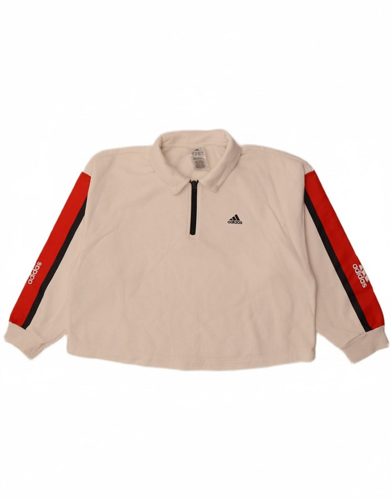 ADIDAS Womens Sweatshirt Jumper UK 12/14 Medium Off White Colourblock